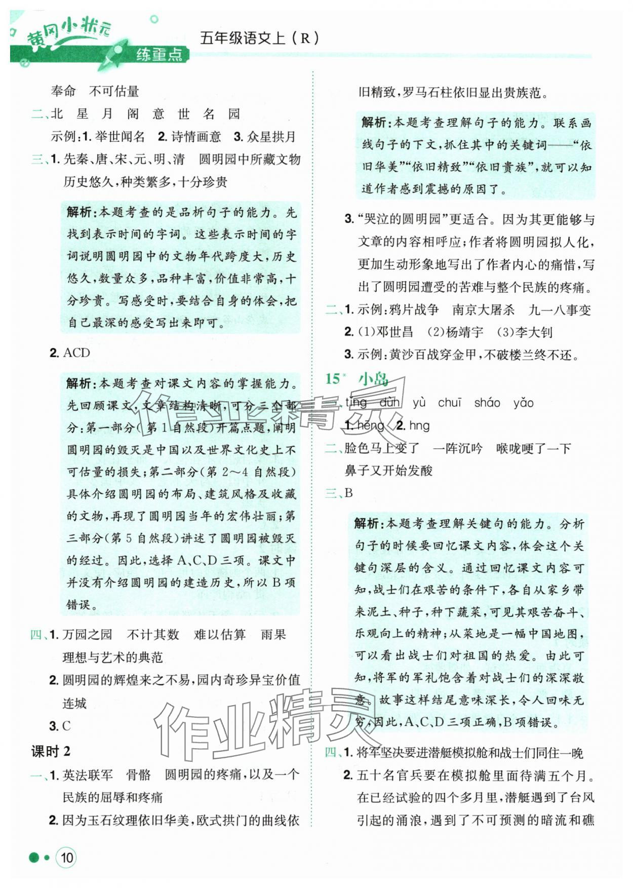 注:目前有些书本章节名称可能整理的还不是很完善,但都是按照顺序排列的,请同学们按照顺序仔细查找。练习册 2024年黄冈小状元练重点五年级语文上册人教版 答案主要是用来给同学们做完题方便对答案用的,请勿直接抄袭。