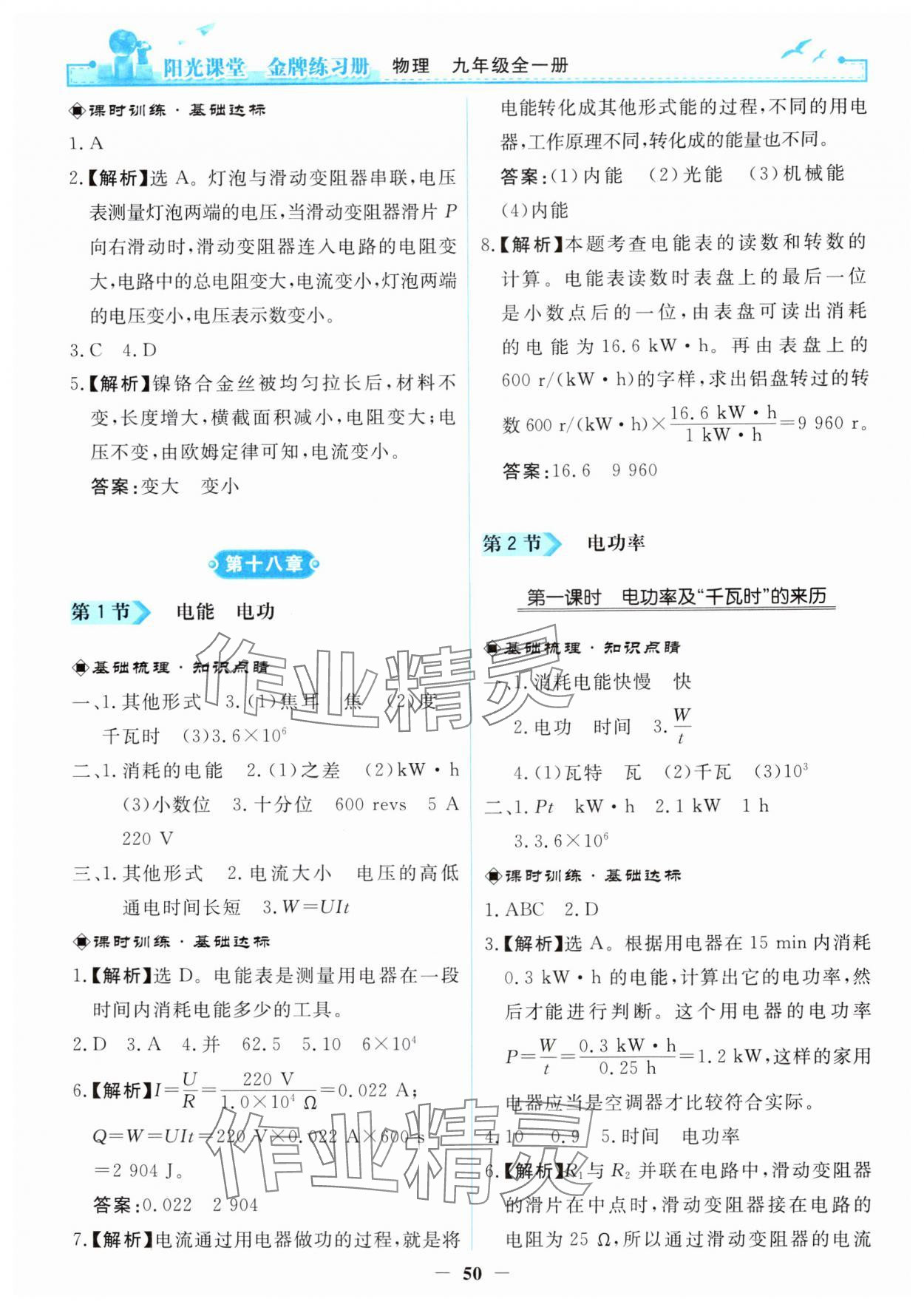 2024年阳光课堂金牌练习册九年级物理全一册人教版