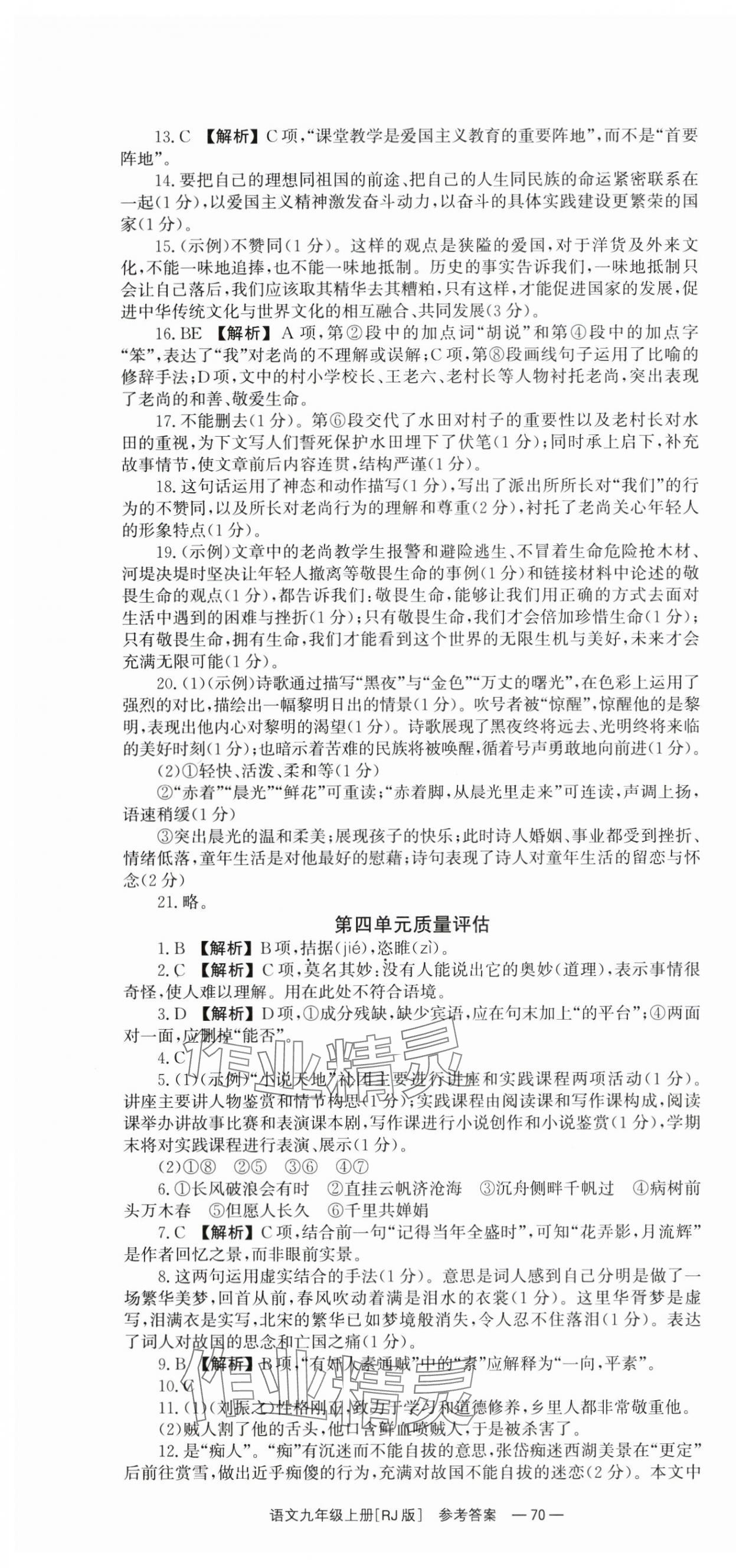 注:目前有些书本章节名称可能整理的还不是很完善,但都是按照顺序排列的,请同学们按照顺序仔细查找。练习册 2024年全效学习同步学练测九年级语文上册人教版 答案主要是用来给同学们做完题方便对答案用的,请勿直接抄袭。