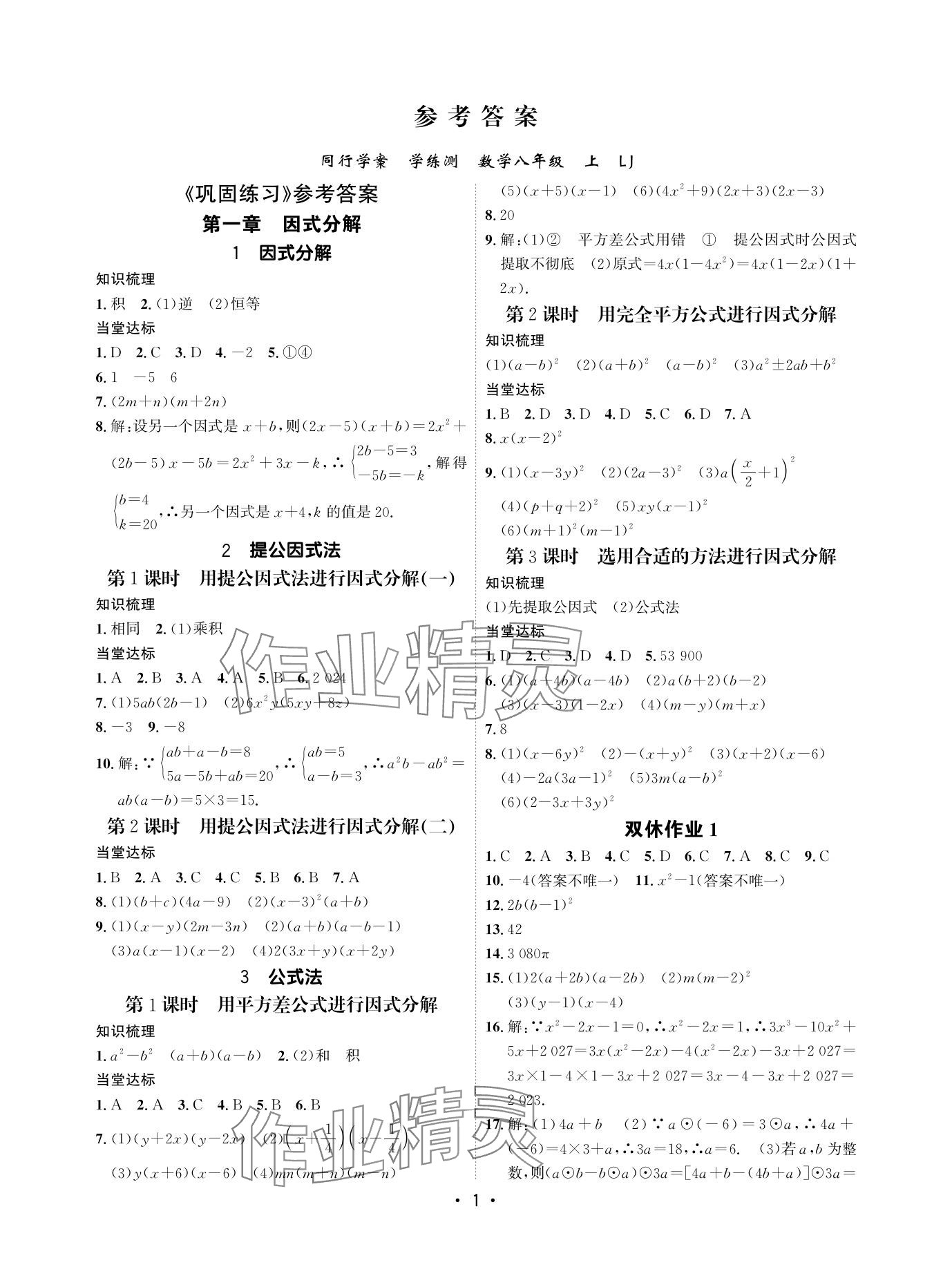 注:目前有些书本章节名称可能整理的还不是很完善,但都是按照顺序排列的,请同学们按照顺序仔细查找。练习册 2024年同行学案八年级数学上册鲁教版五四制 答案主要是用来给同学们做完题方便对答案用的,请勿直接抄袭。
