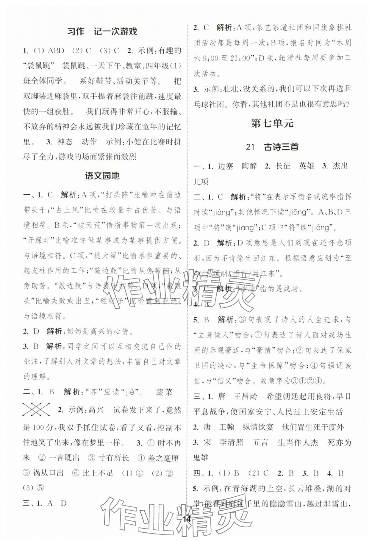 注:目前有些书本章节名称可能整理的还不是很完善,但都是按照顺序排列的,请同学们按照顺序仔细查找。练习册 2024年通城学典课时作业本四年级语文上册人教版福建专版 答案主要是用来给同学们做完题方便对答案用的,请勿直接抄袭。