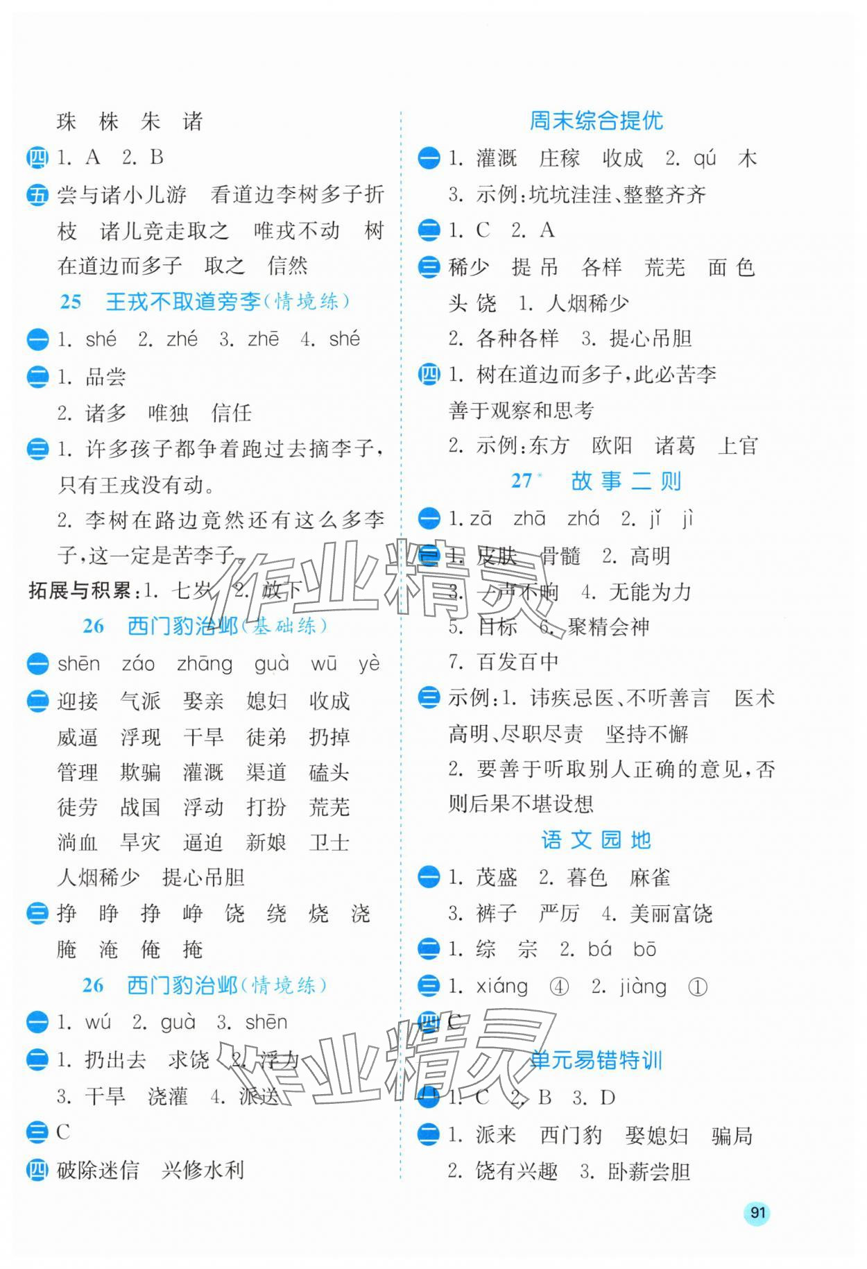 相关练习册答案