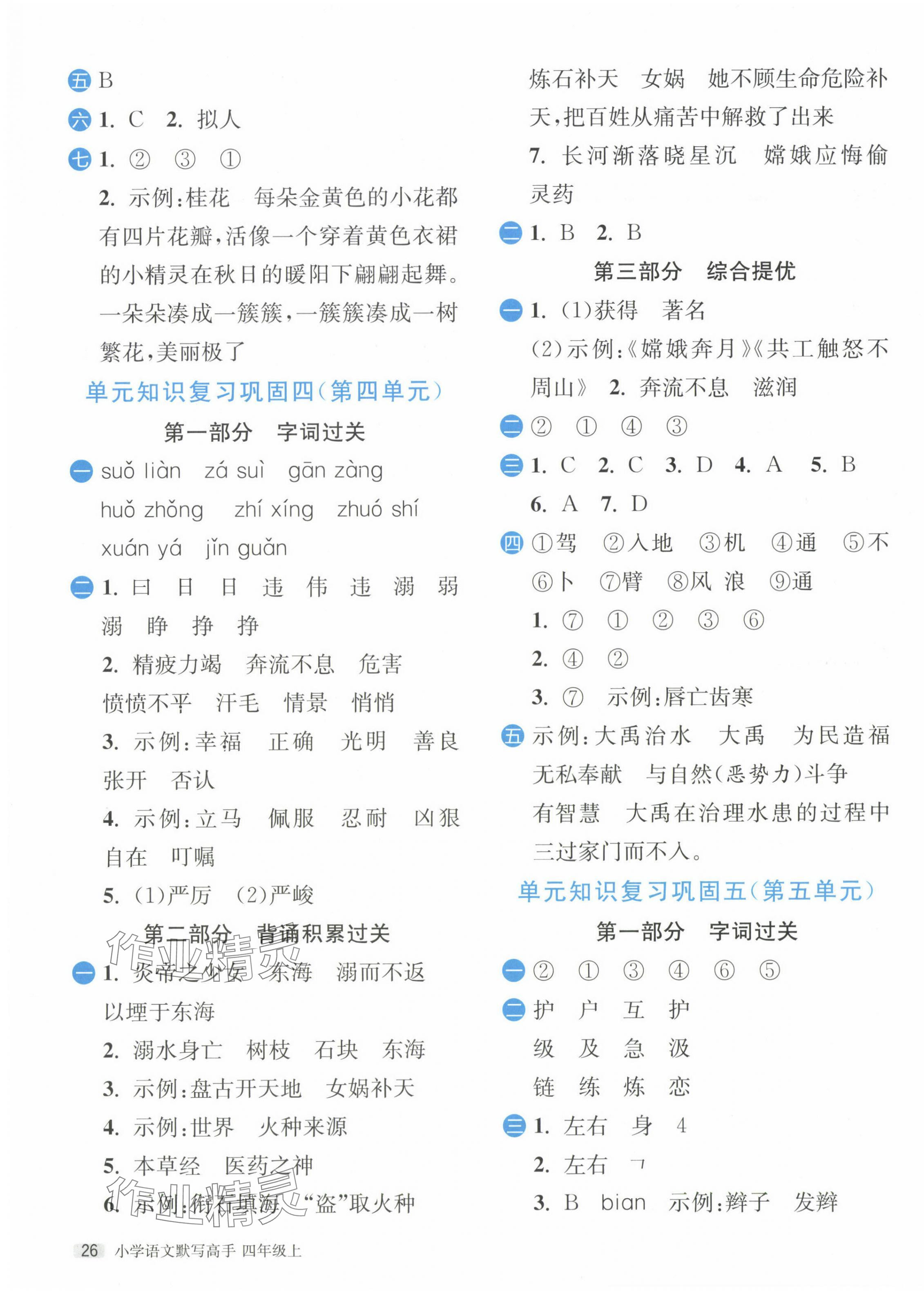 注:目前有些书本章节名称可能整理的还不是很完善,但都是按照顺序排列的,请同学们按照顺序仔细查找。练习册 2024年小学语文默写高手四年级上册人教版 答案主要是用来给同学们做完题方便对答案用的,请勿直接抄袭。