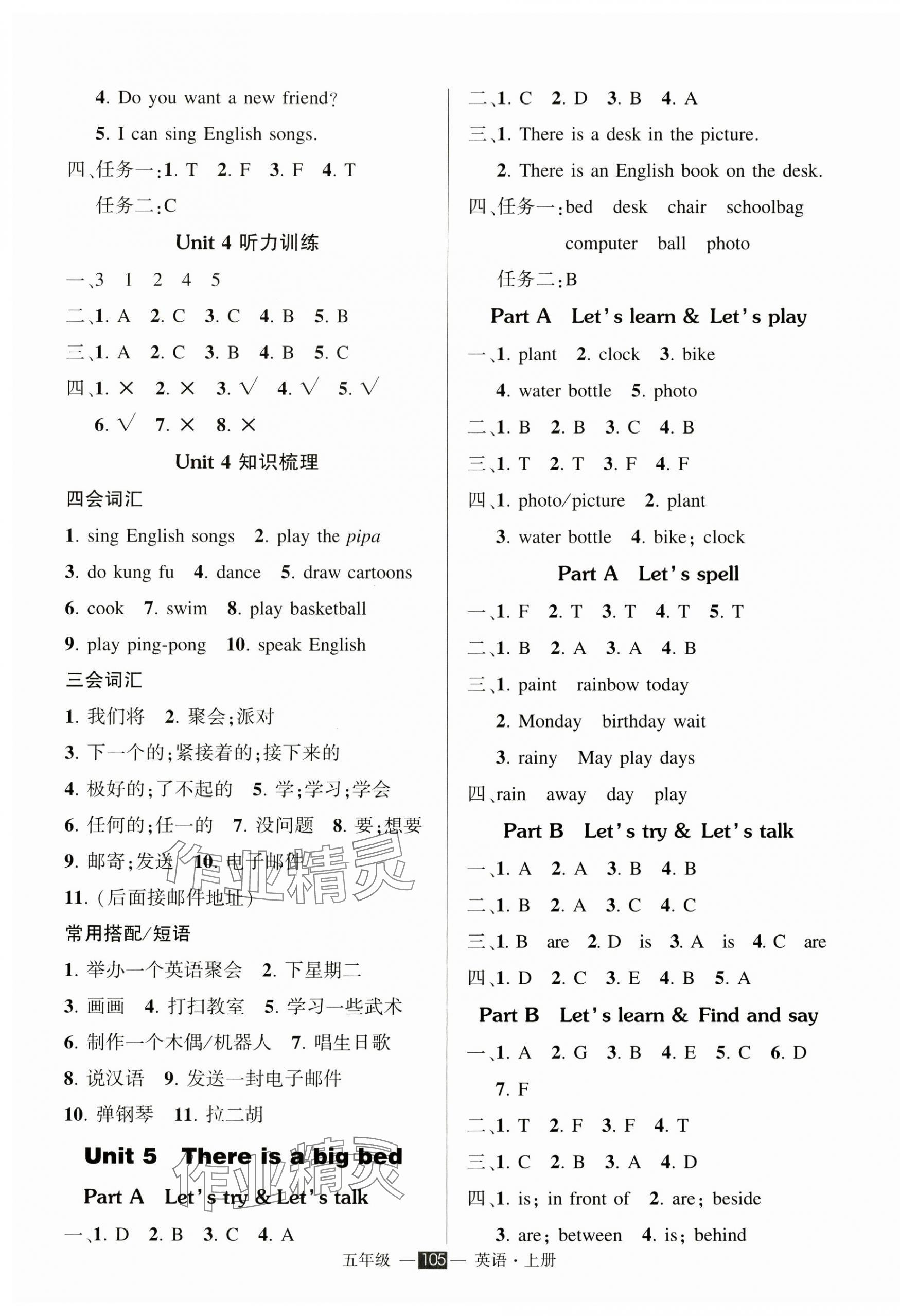 注:目前有些书本章节名称可能整理的还不是很完善,但都是按照顺序排列的,请同学们按照顺序仔细查找。练习册 2024年状元成才路创优作业100分五年级英语上册人教版 答案主要是用来给同学们做完题方便对答案用的,请勿直接抄袭。