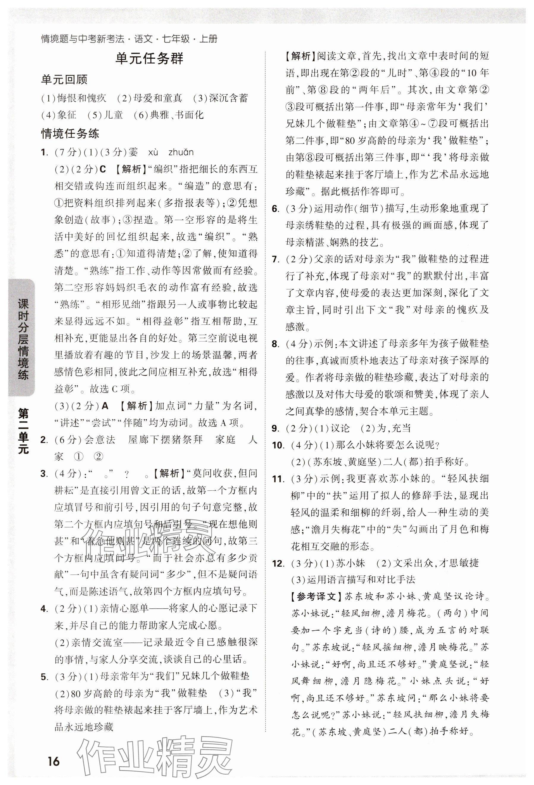 注:目前有些书本章节名称可能整理的还不是很完善,但都是按照顺序排列的,请同学们按照顺序仔细查找。练习册 2024年万唯中考情境题七年级语文上册人教版 答案主要是用来给同学们做完题方便对答案用的,请勿直接抄袭。