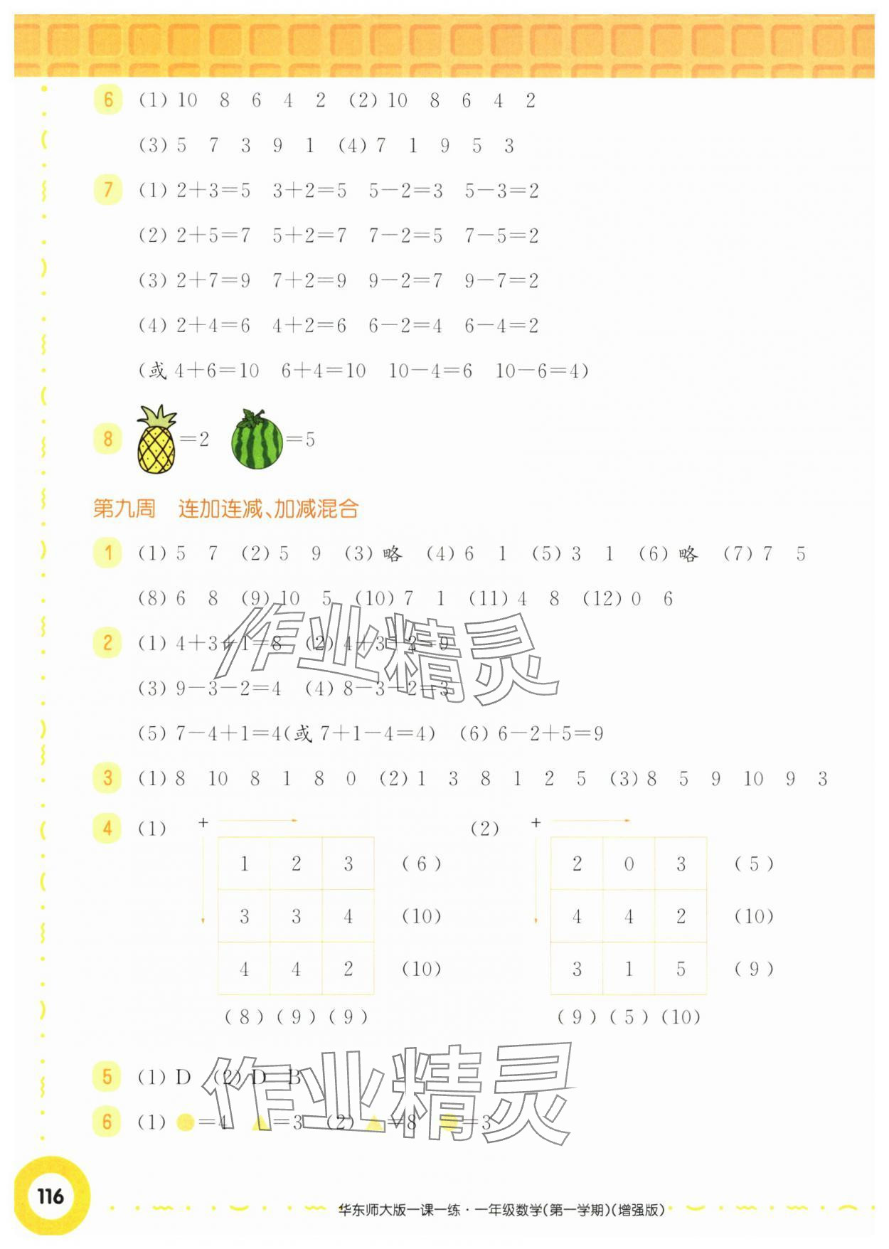 注:目前有些书本章节名称可能整理的还不是很完善,但都是按照顺序排列的,请同学们按照顺序仔细查找。练习册 2024年华东师大版一课一练一年级数学上册沪教版五四制增强版 答案主要是用来给同学们做完题方便对答案用的,请勿直接抄袭。