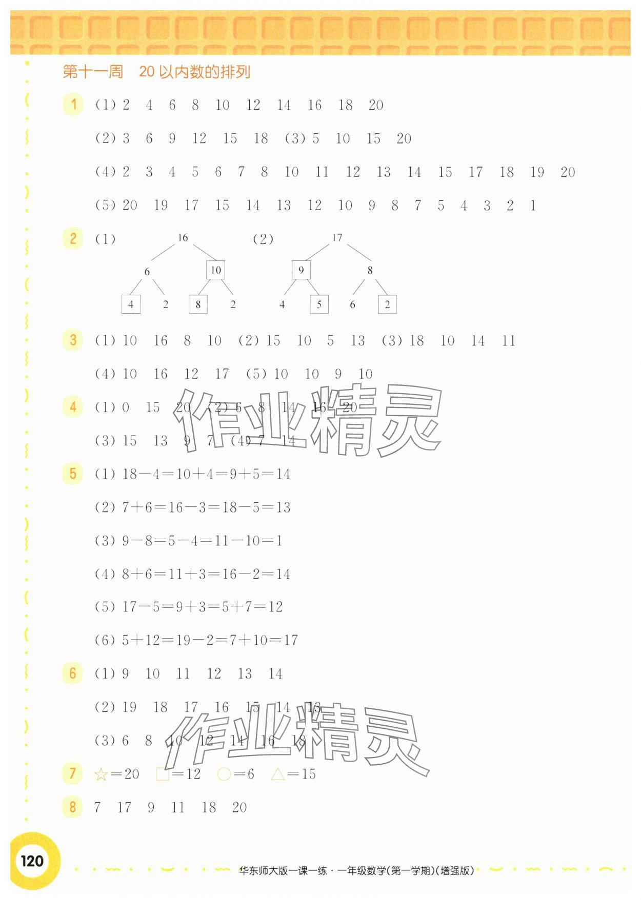 注:目前有些书本章节名称可能整理的还不是很完善,但都是按照顺序排列的,请同学们按照顺序仔细查找。练习册 2024年华东师大版一课一练一年级数学上册沪教版五四制增强版 答案主要是用来给同学们做完题方便对答案用的,请勿直接抄袭。