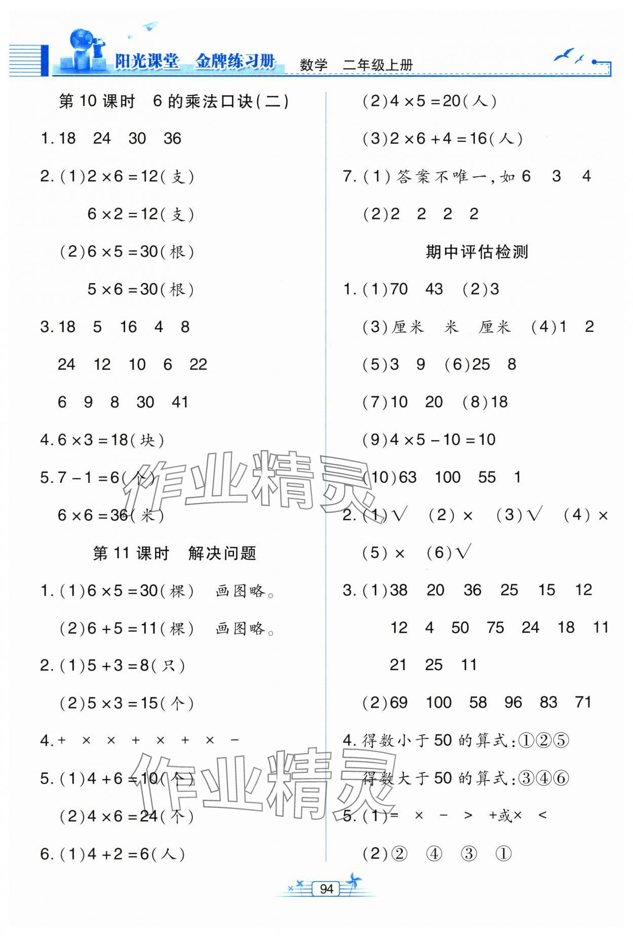 2024年阳光课堂金牌练习册二年级数学上册人教版