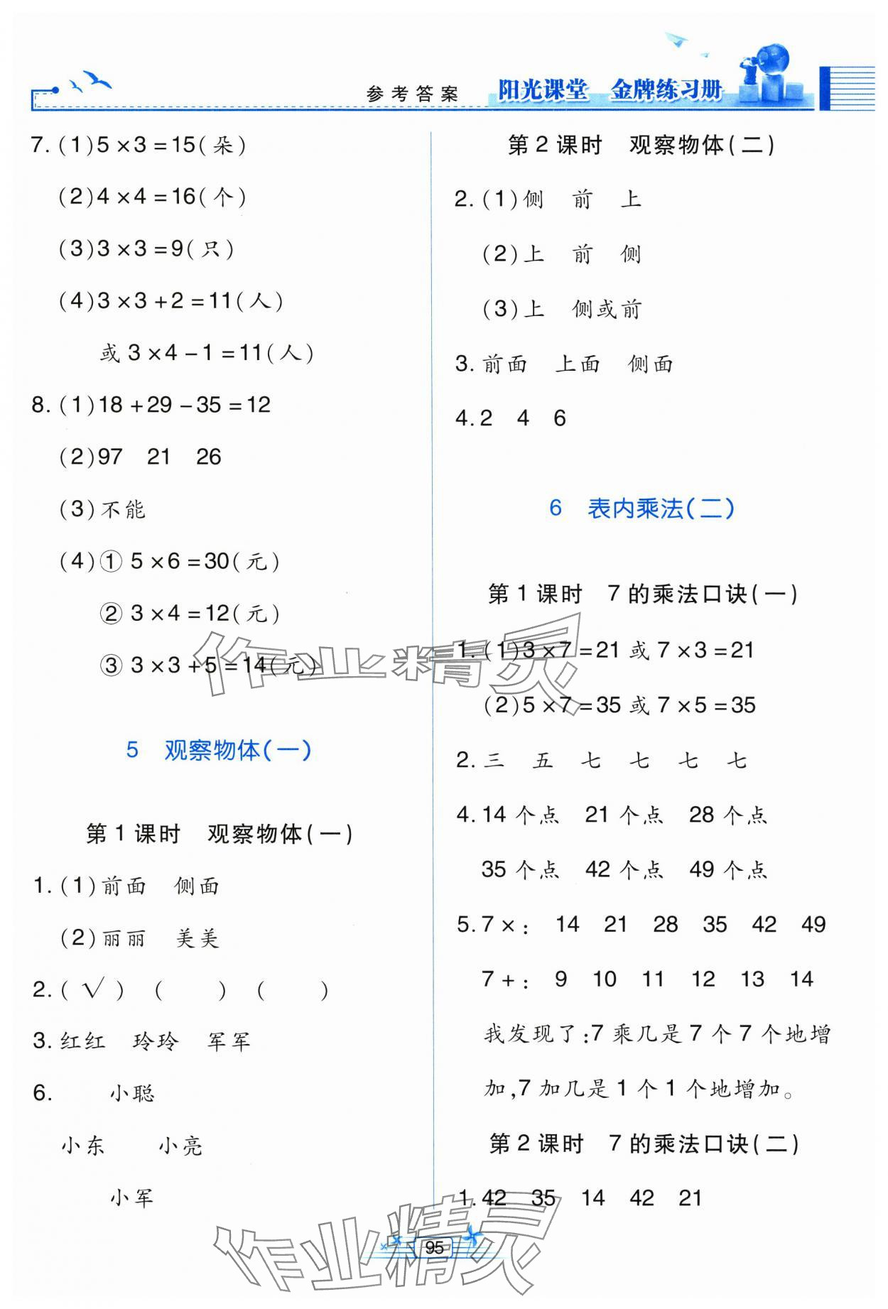 注:目前有些书本章节名称可能整理的还不是很完善,但都是按照顺序排列的,请同学们按照顺序仔细查找。练习册 2024年阳光课堂金牌练习册二年级数学上册人教版 答案主要是用来给同学们做完题方便对答案用的,请勿直接抄袭。
