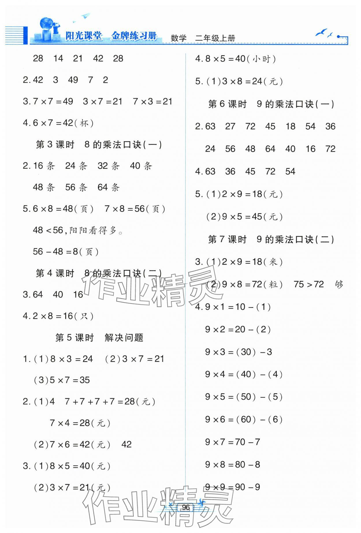 《2024年阳光课堂金牌练习册二年级数学上册人教版》