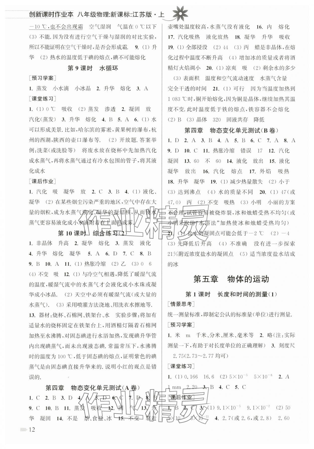 注:目前有些书本章节名称可能整理的还不是很完善,但都是按照顺序排列的,请同学们按照顺序仔细查找。练习册 2024年创新课时作业本八年级物理上册江苏版 答案主要是用来给同学们做完题方便对答案用的,请勿直接抄袭。