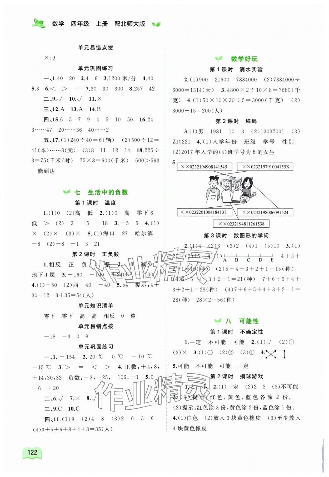注:目前有些书本章节名称可能整理的还不是很完善,但都是按照顺序排列的,请同学们按照顺序仔细查找。练习册 2024年新课程学习与测评同步学习四年级数学上册北师大版 答案主要是用来给同学们做完题方便对答案用的,请勿直接抄袭。