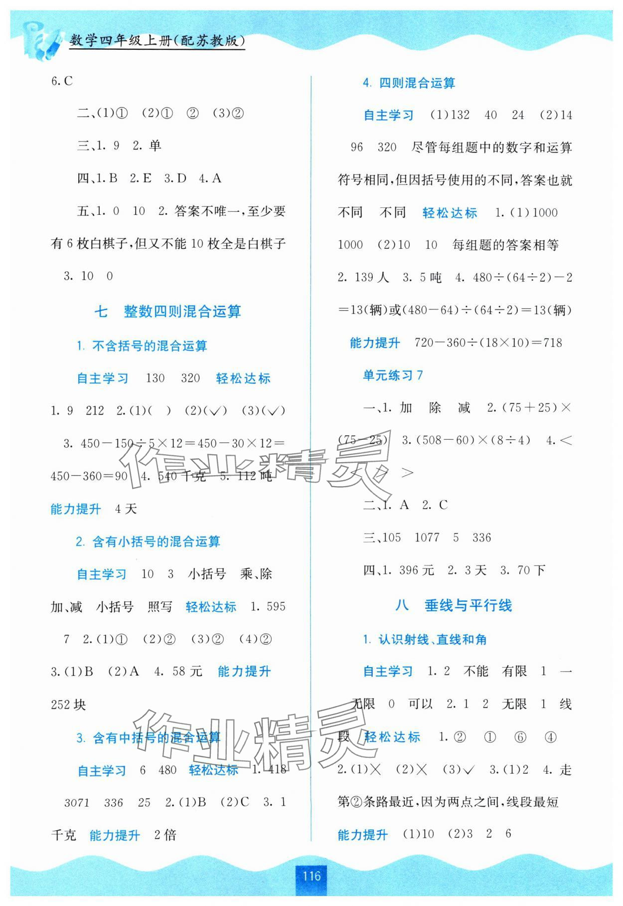 注:目前有些书本章节名称可能整理的还不是很完善,但都是按照顺序排列的,请同学们按照顺序仔细查找。练习册 2024年自主学习能力测评四年级数学上册苏教版 答案主要是用来给同学们做完题方便对答案用的,请勿直接抄袭。