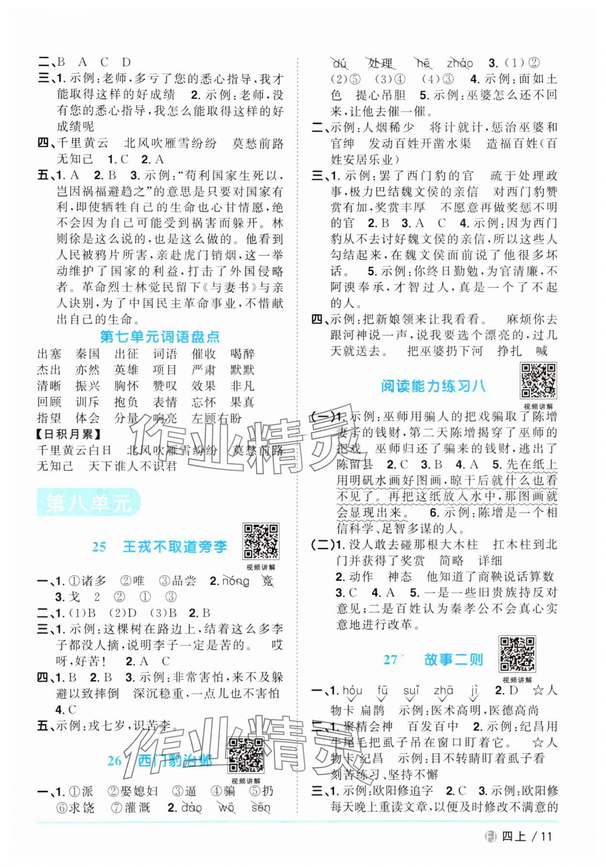 注:目前有些书本章节名称可能整理的还不是很完善,但都是按照顺序排列的,请同学们按照顺序仔细查找。练习册 2024年阳光同学课时优化作业四年级语文上册人教版福建专版 答案主要是用来给同学们做完题方便对答案用的,请勿直接抄袭。