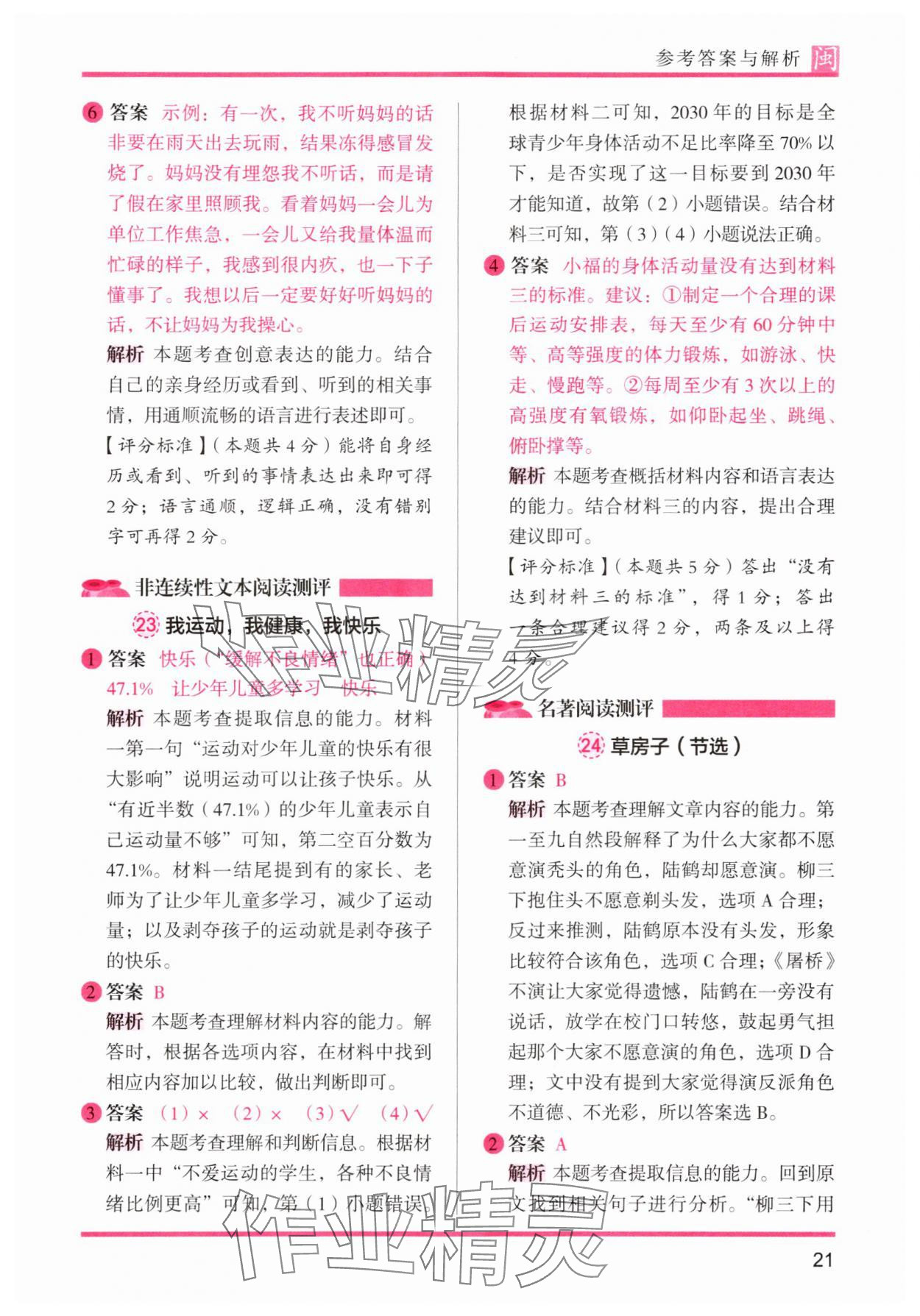 注:目前有些书本章节名称可能整理的还不是很完善,但都是按照顺序排列的,请同学们按照顺序仔细查找。练习册 2024年木头马阅读力测评六年级语文部编版A版福建专版 答案主要是用来给同学们做完题方便对答案用的,请勿直接抄袭。