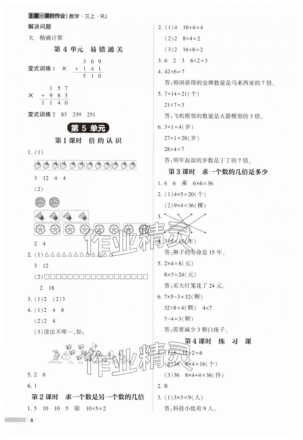 注:目前有些书本章节名称可能整理的还不是很完善,但都是按照顺序排列的,请同学们按照顺序仔细查找。练习册 2024年经纶学典课时作业三年级数学上册人教版 答案主要是用来给同学们做完题方便对答案用的,请勿直接抄袭。