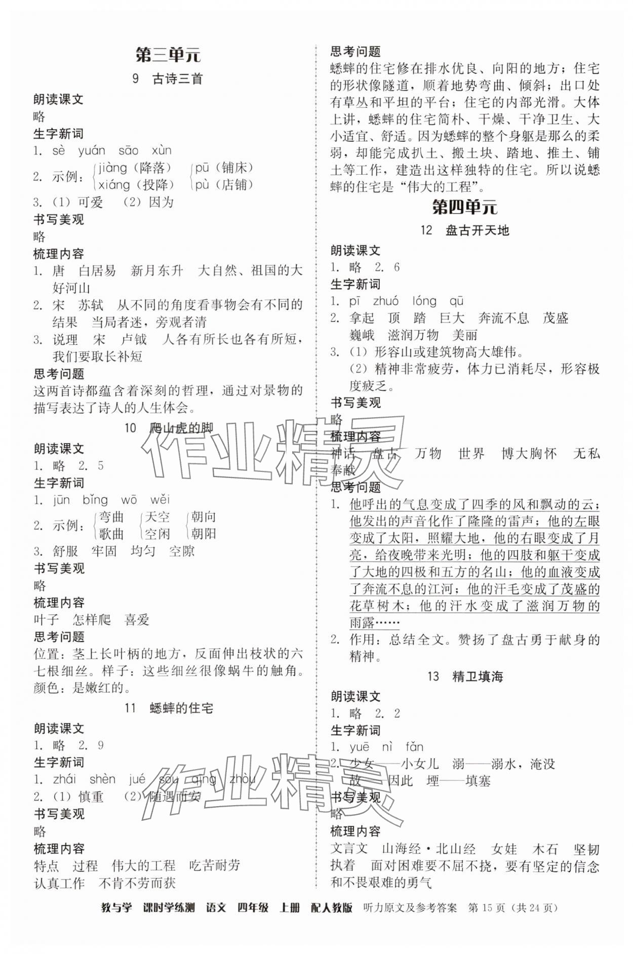 注:目前有些书本章节名称可能整理的还不是很完善,但都是按照顺序排列的,请同学们按照顺序仔细查找。练习册 2024年教与学课时学练测四年级语文上册人教版 答案主要是用来给同学们做完题方便对答案用的,请勿直接抄袭。