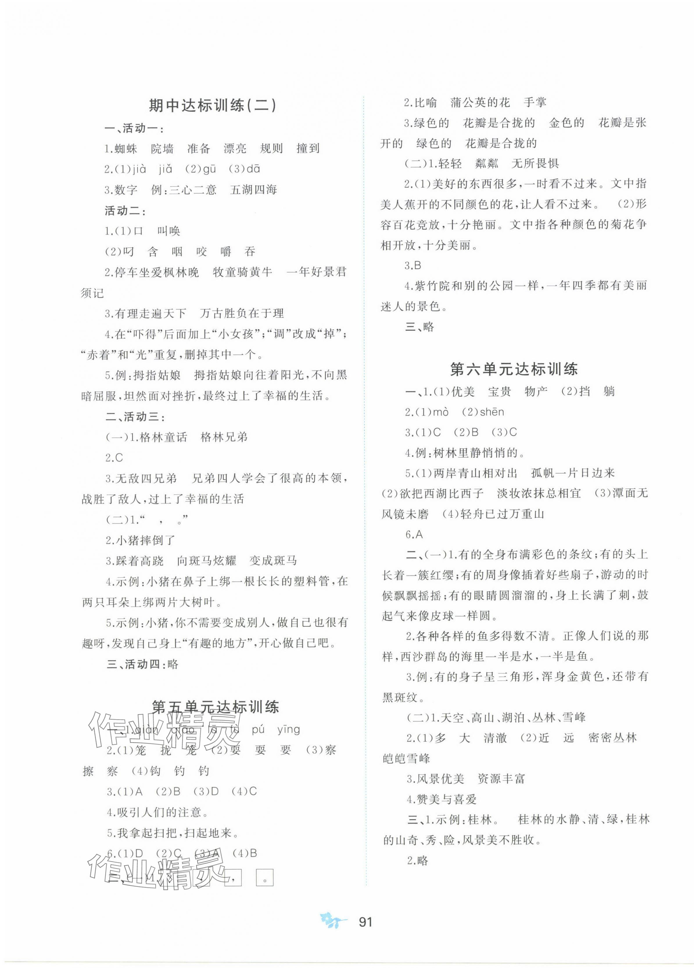 注:目前有些书本章节名称可能整理的还不是很完善,但都是按照顺序排列的,请同学们按照顺序仔细查找。练习册 2024年新课程学习与测评单元双测三年级语文上册人教版A版 答案主要是用来给同学们做完题方便对答案用的,请勿直接抄袭。