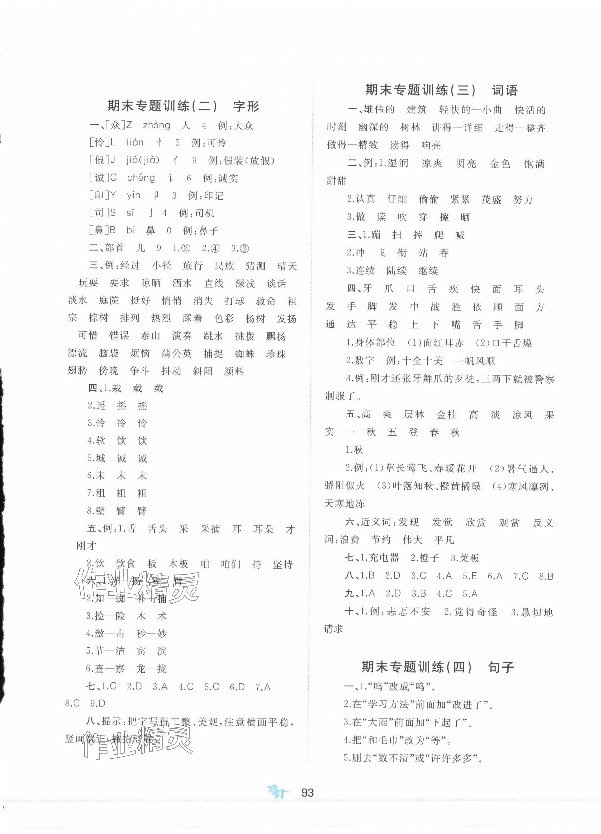 注:目前有些书本章节名称可能整理的还不是很完善,但都是按照顺序排列的,请同学们按照顺序仔细查找。练习册 2024年新课程学习与测评单元双测三年级语文上册人教版A版 答案主要是用来给同学们做完题方便对答案用的,请勿直接抄袭。