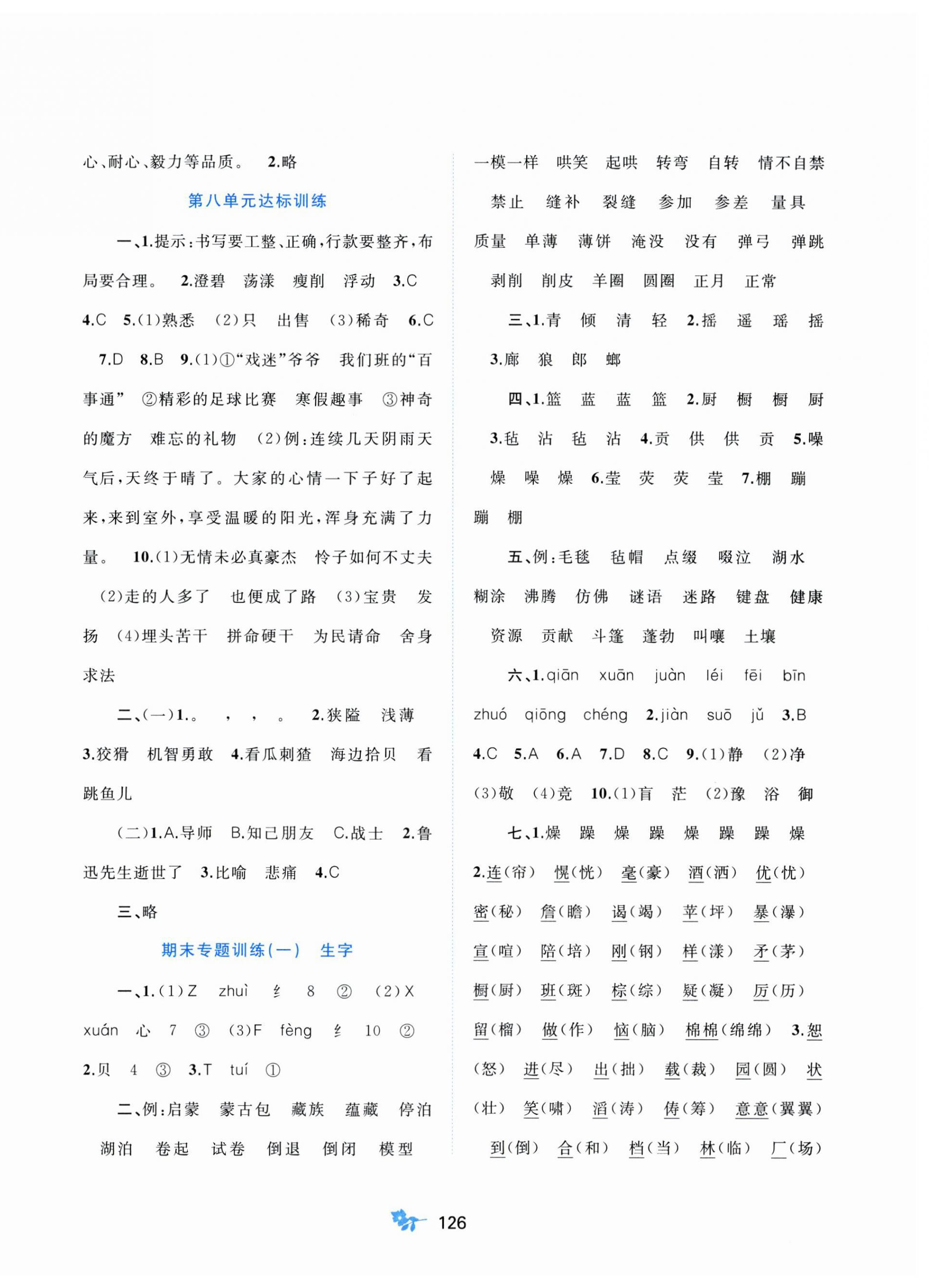注:目前有些书本章节名称可能整理的还不是很完善,但都是按照顺序排列的,请同学们按照顺序仔细查找。练习册 2024年新课程学习与测评单元双测六年级语文上册人教版A版 答案主要是用来给同学们做完题方便对答案用的,请勿直接抄袭。