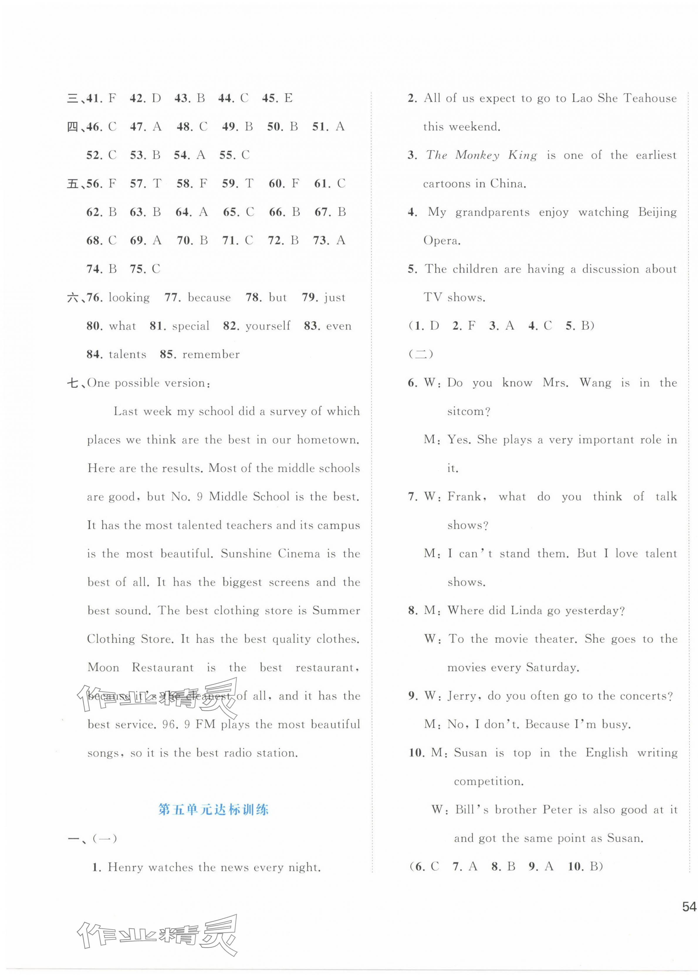 注:目前有些书本章节名称可能整理的还不是很完善,但都是按照顺序排列的,请同学们按照顺序仔细查找。练习册 2024年新课程学习与测评单元双测八年级英语上册人教版A版 答案主要是用来给同学们做完题方便对答案用的,请勿直接抄袭。