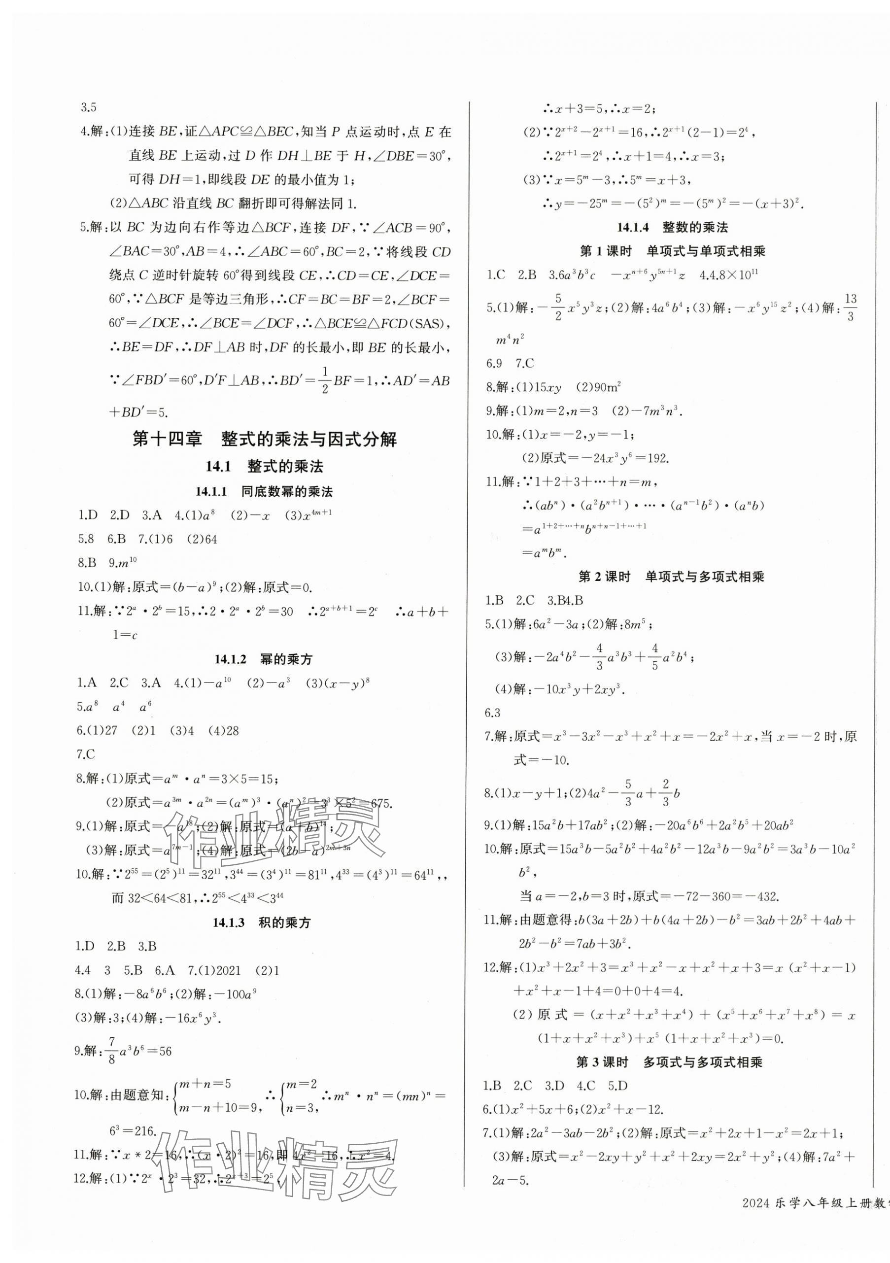 注:目前有些书本章节名称可能整理的还不是很完善,但都是按照顺序排列的,请同学们按照顺序仔细查找。练习册 2024年乐学课堂课时学讲练八年级数学上册人教版 答案主要是用来给同学们做完题方便对答案用的,请勿直接抄袭。