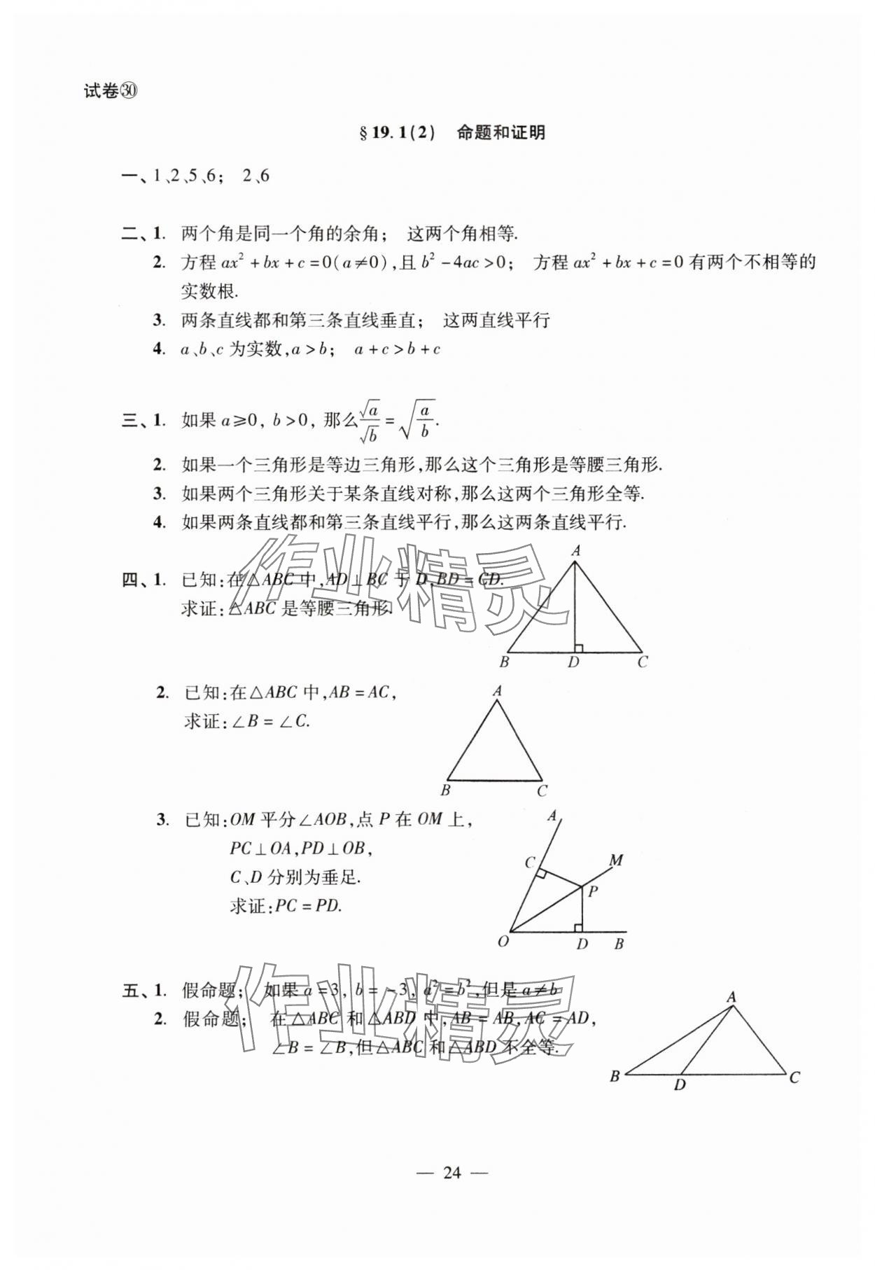 注:目前有些书本章节名称可能整理的还不是很完善,但都是按照顺序排列的,请同学们按照顺序仔细查找。练习册 2024年数学单元测试光明日报出版社八年级上册沪教版54制 答案主要是用来给同学们做完题方便对答案用的,请勿直接抄袭。