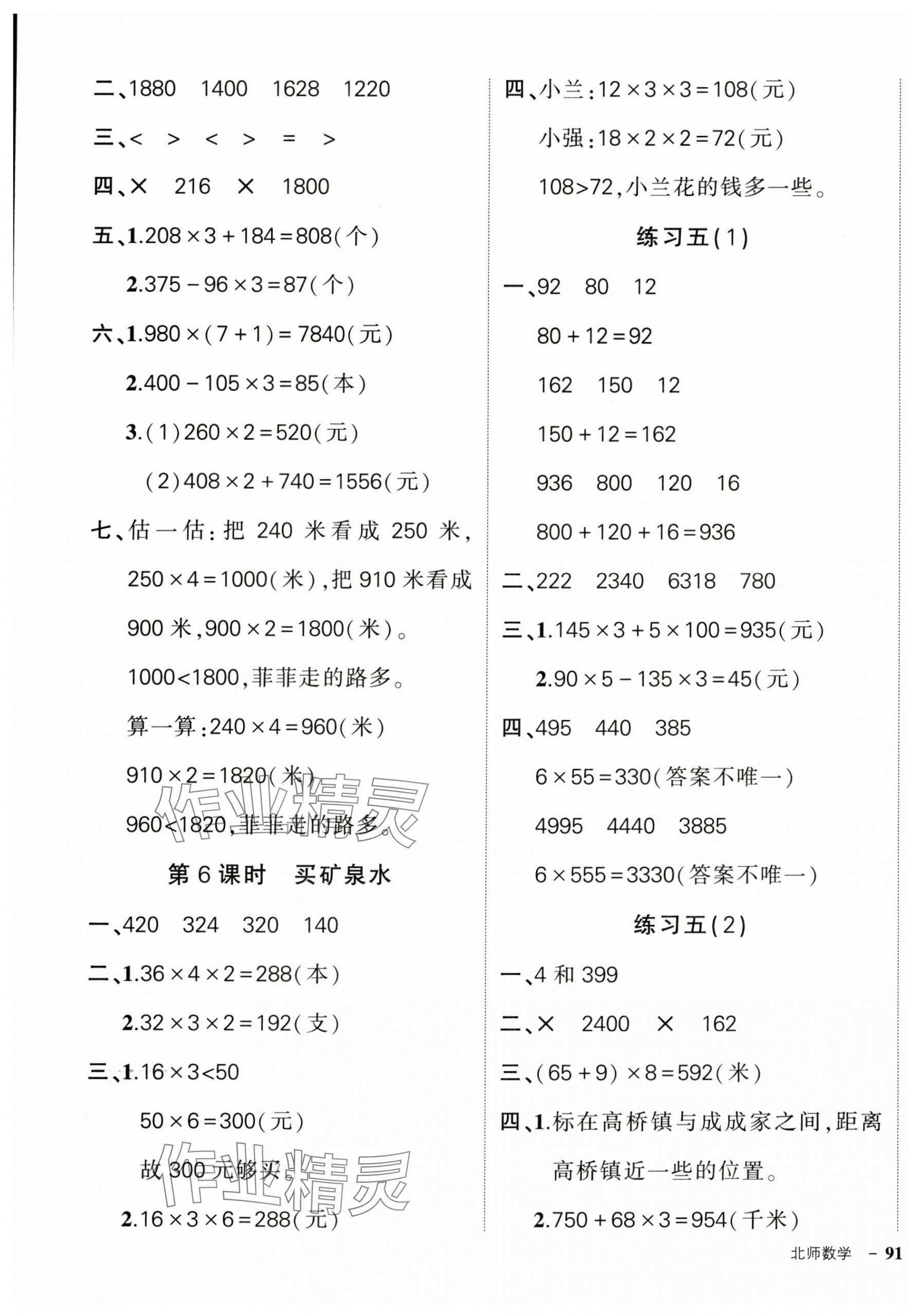 2024年状元成才路创优作业100分三年级数学上册北师大版