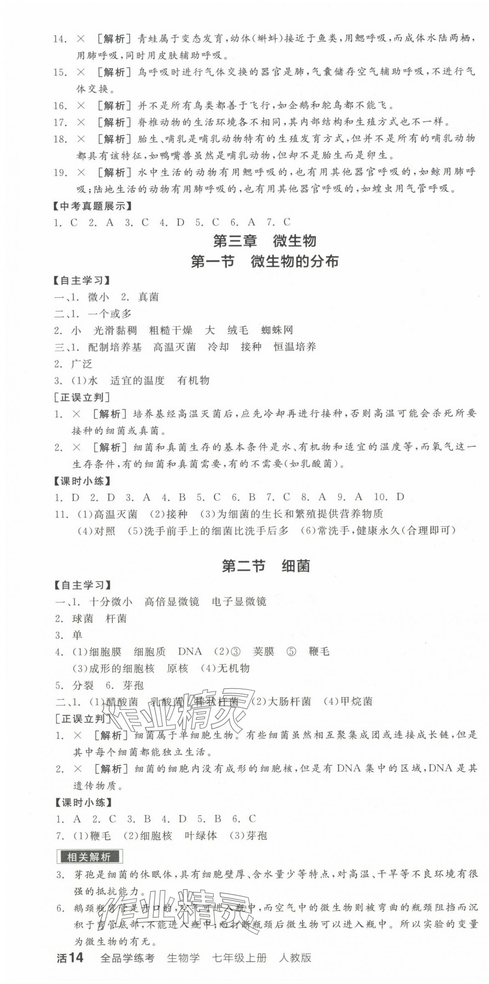 注:目前有些书本章节名称可能整理的还不是很完善,但都是按照顺序排列的,请同学们按照顺序仔细查找。练习册 2024年全品学练考七年级生物上册人教版 答案主要是用来给同学们做完题方便对答案用的,请勿直接抄袭。