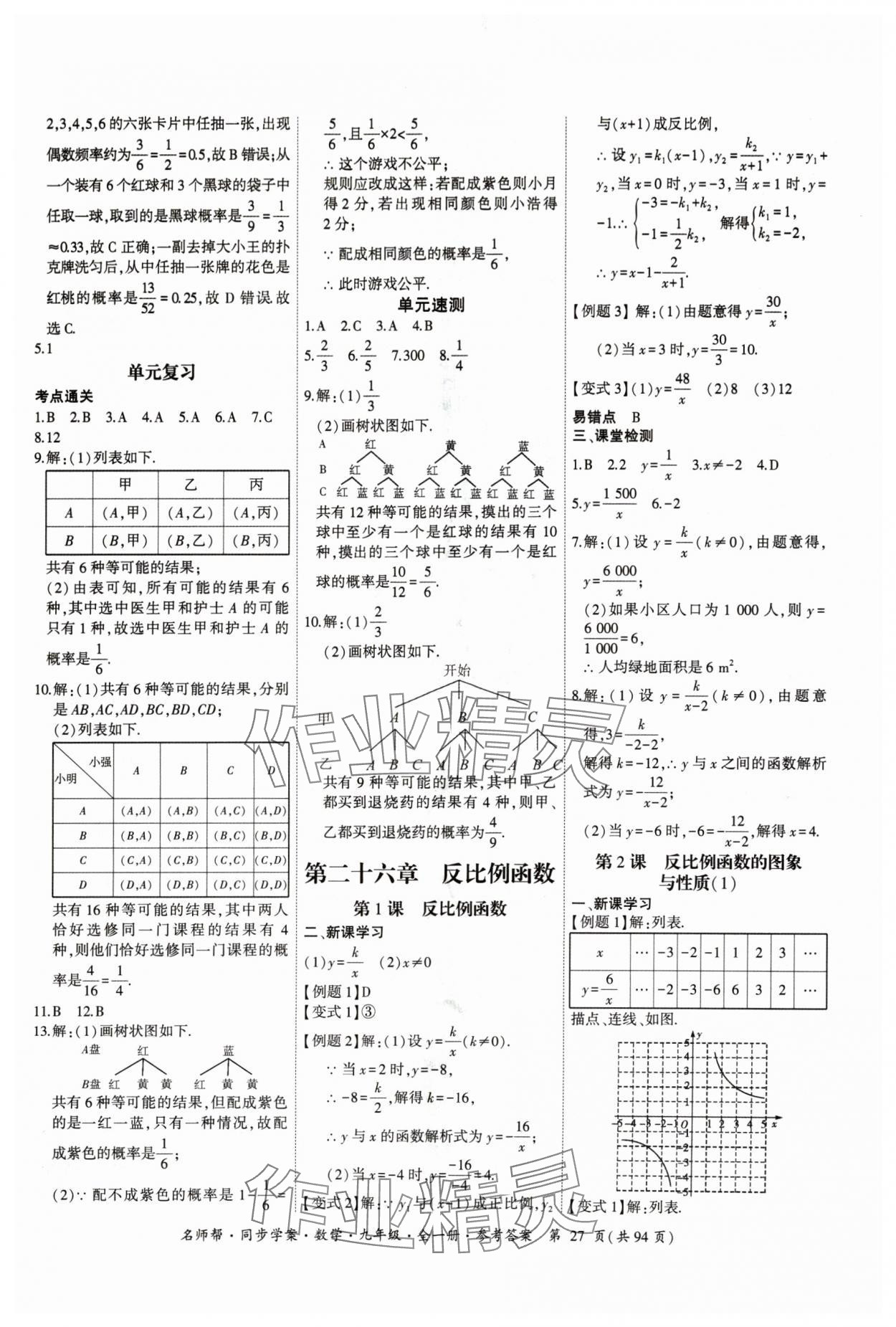 注:目前有些书本章节名称可能整理的还不是很完善,但都是按照顺序排列的,请同学们按照顺序仔细查找。练习册 2024年名师帮同步学案九年级数学全一册人教版 答案主要是用来给同学们做完题方便对答案用的,请勿直接抄袭。