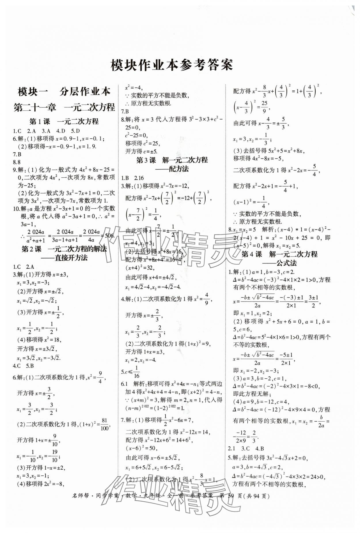 注:目前有些书本章节名称可能整理的还不是很完善,但都是按照顺序排列的,请同学们按照顺序仔细查找。练习册 2024年名师帮同步学案九年级数学全一册人教版 答案主要是用来给同学们做完题方便对答案用的,请勿直接抄袭。