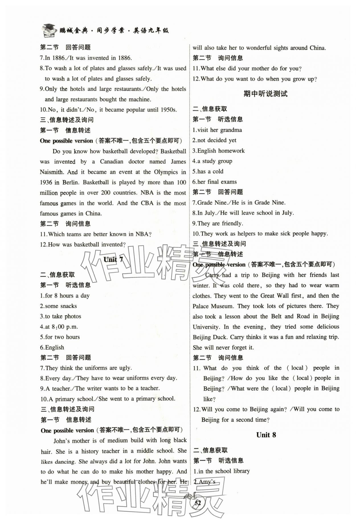 - 参考答案第52页