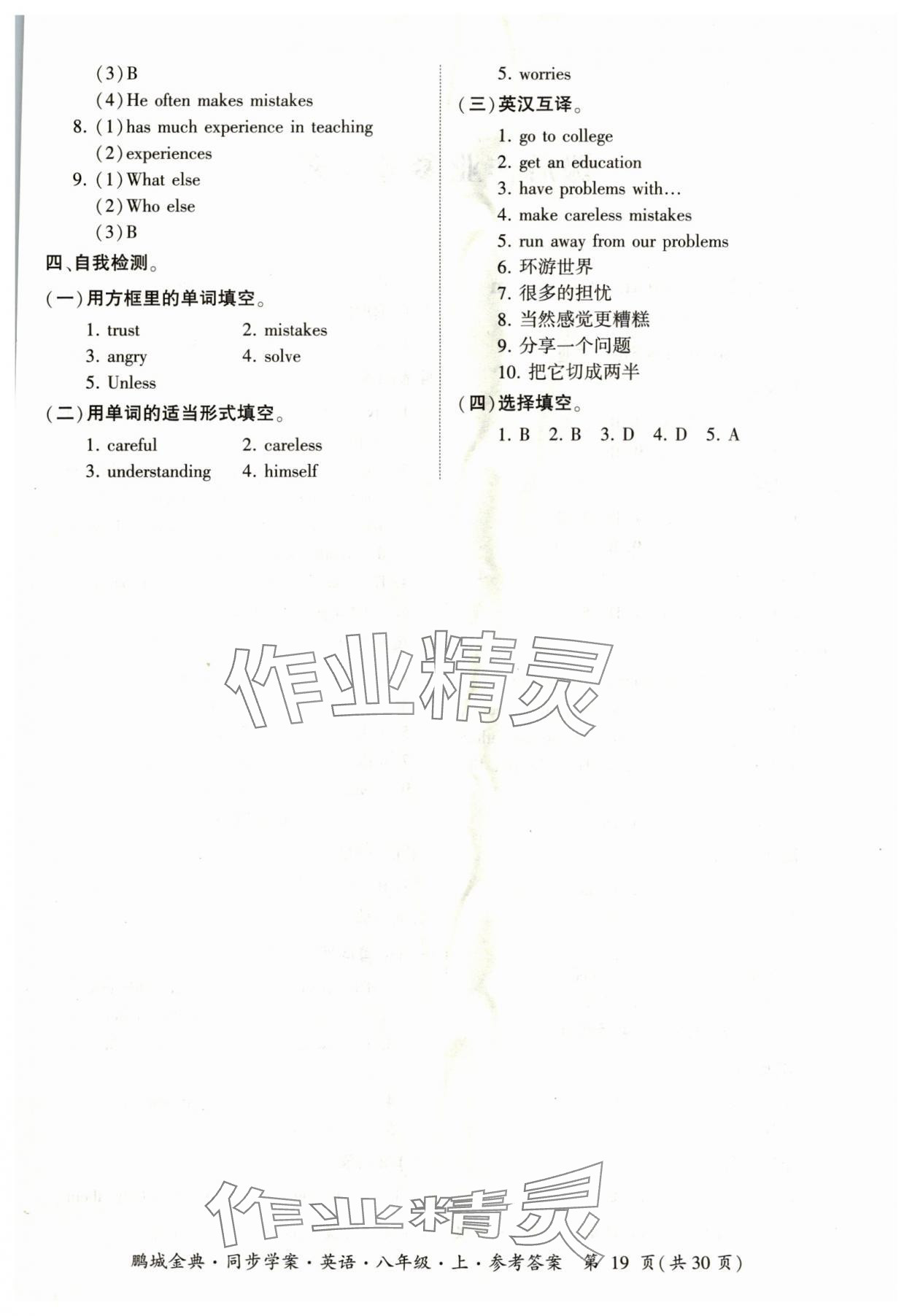 注:目前有些书本章节名称可能整理的还不是很完善,但都是按照顺序排列的,请同学们按照顺序仔细查找。练习册 2024年名师帮同步学案八年级英语上册人教版 答案主要是用来给同学们做完题方便对答案用的,请勿直接抄袭。