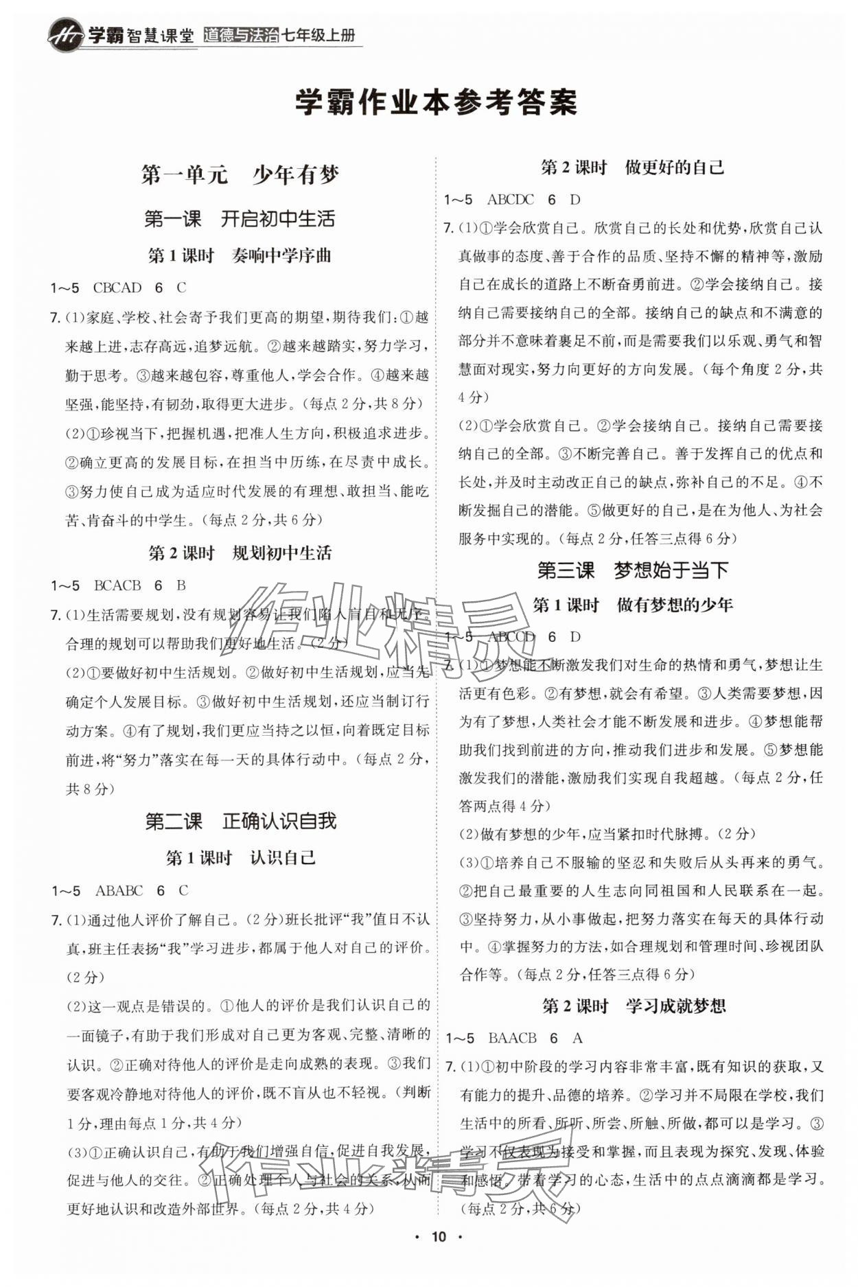 注:目前有些书本章节名称可能整理的还不是很完善,但都是按照顺序排列的,请同学们按照顺序仔细查找。练习册 2024年学霸智慧课堂七年级道德与法治上册人教版 答案主要是用来给同学们做完题方便对答案用的,请勿直接抄袭。