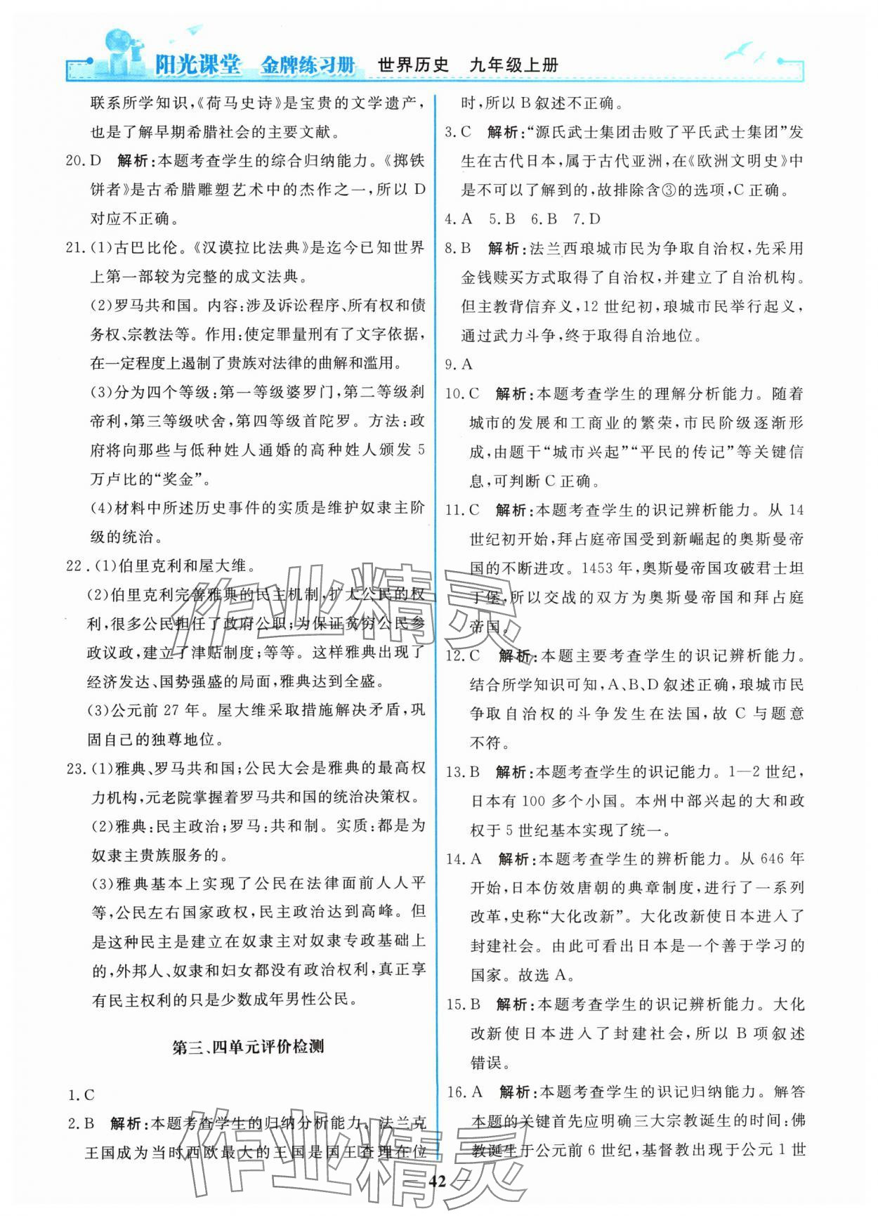 2024年阳光课堂金牌练习册九年级历史上册人教版