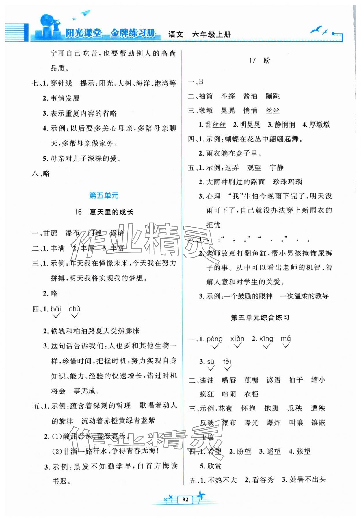 2024年阳光课堂金牌练习册六年级语文上册人教版