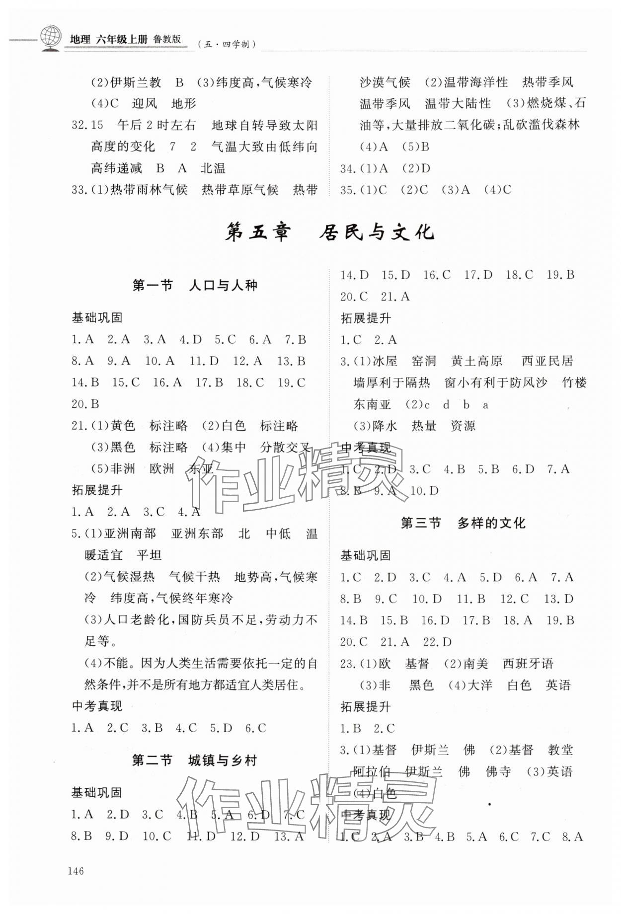 注:目前有些书本章节名称可能整理的还不是很完善,但都是按照顺序排列的,请同学们按照顺序仔细查找。练习册 2024年同步练习册明天出版社六年级地理上册鲁教版五四制 答案主要是用来给同学们做完题方便对答案用的,请勿直接抄袭。