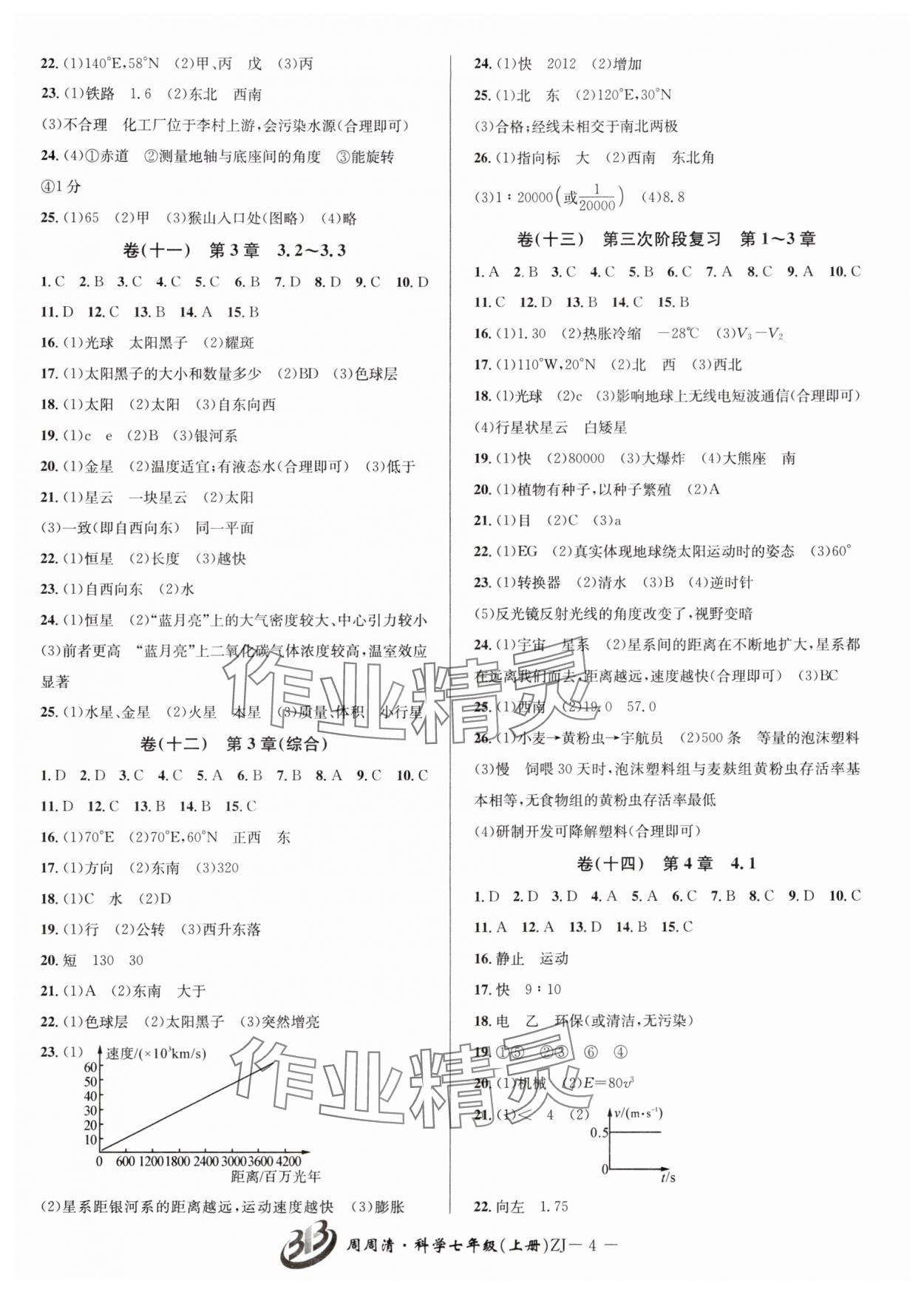 注:目前有些书本章节名称可能整理的还不是很完善,但都是按照顺序排列的,请同学们按照顺序仔细查找。练习册 2024年周周清检测七年级科学上册浙教版 答案主要是用来给同学们做完题方便对答案用的,请勿直接抄袭。