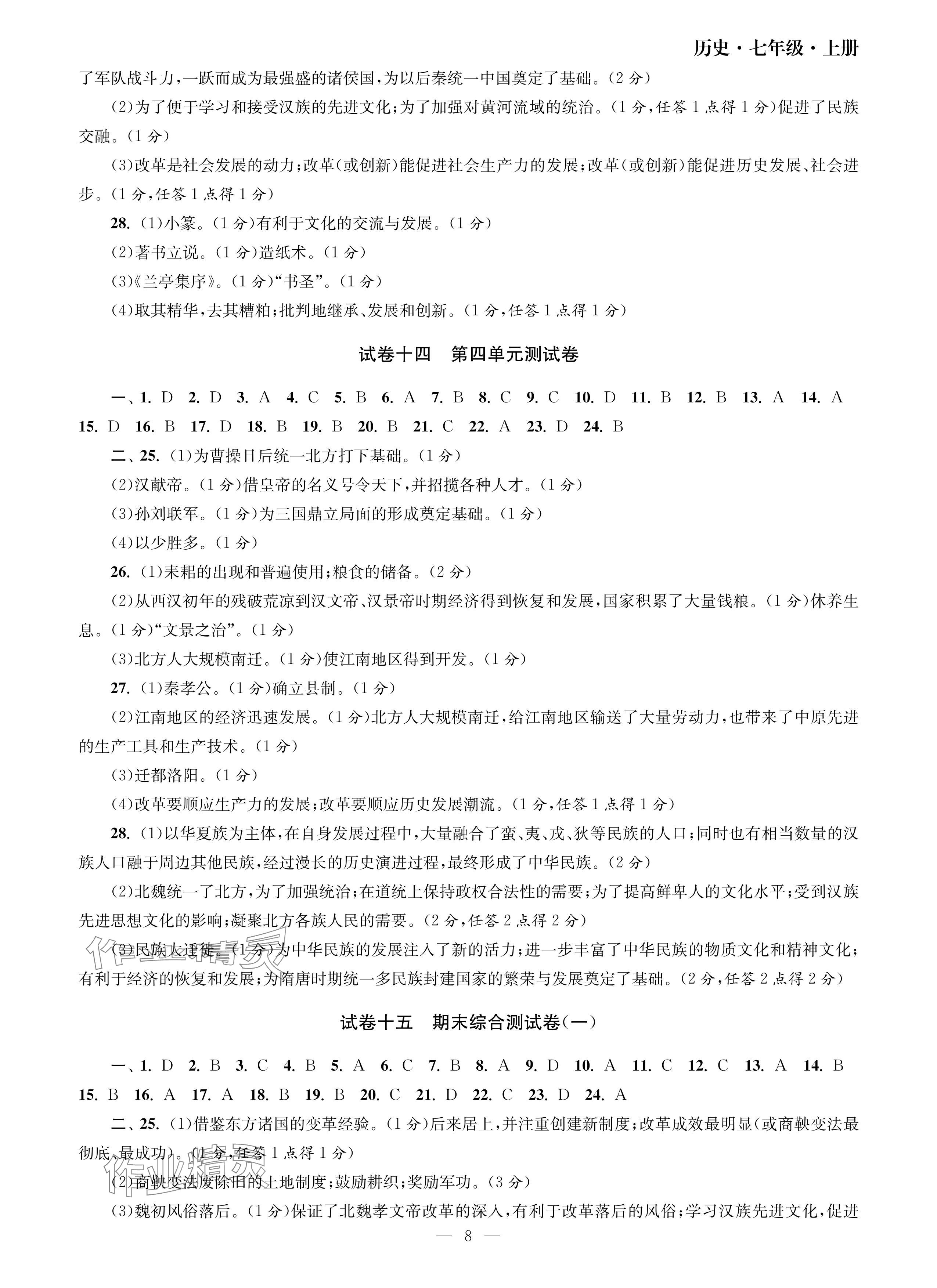 2024年智慧学习初中学科单元试卷七年级历史上册人教版