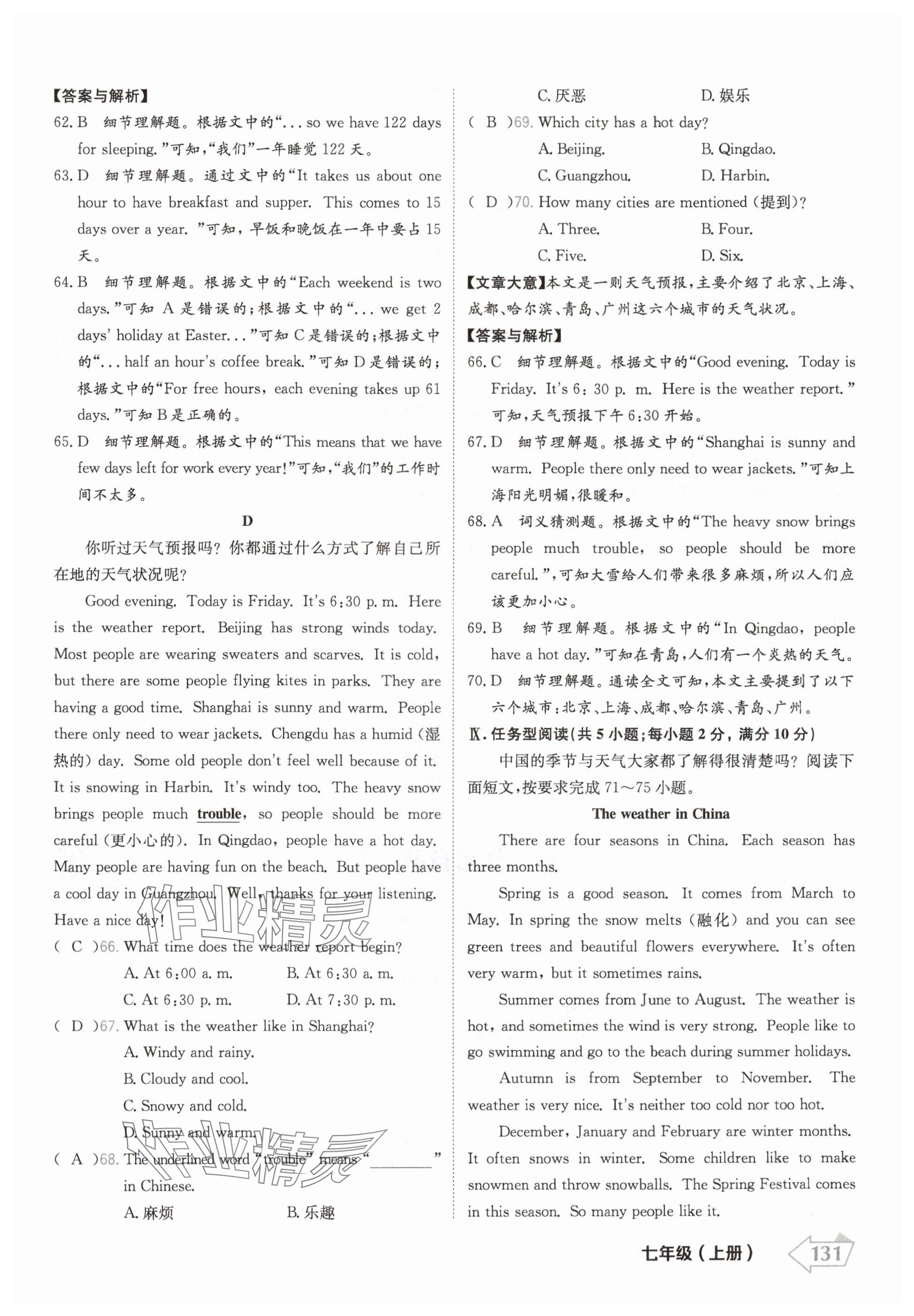 注:目前有些书本章节名称可能整理的还不是很完善,但都是按照顺序排列的,请同学们按照顺序仔细查找。练习册 2024年金牌学练测七年级英语上册冀教版 答案主要是用来给同学们做完题方便对答案用的,请勿直接抄袭。