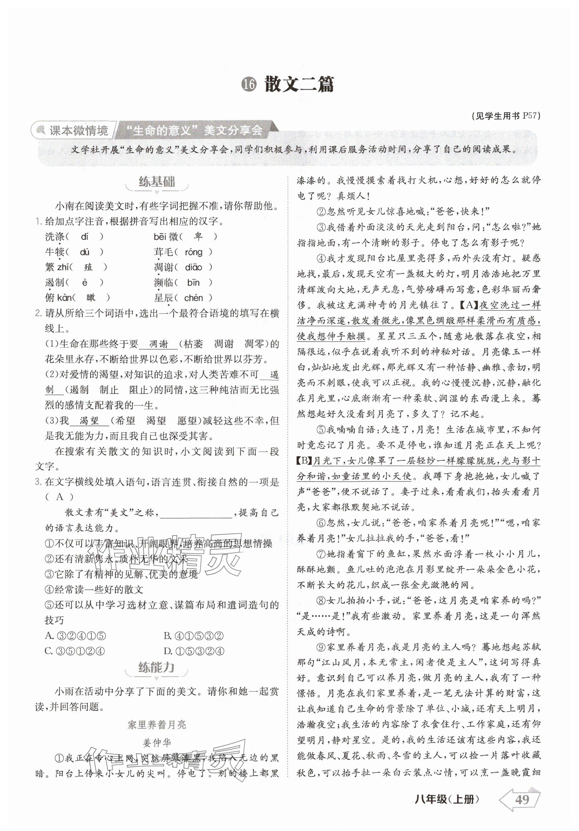 注:目前有些书本章节名称可能整理的还不是很完善,但都是按照顺序排列的,请同学们按照顺序仔细查找。练习册 2024年金牌学练测八年级语文上册人教版 答案主要是用来给同学们做完题方便对答案用的,请勿直接抄袭。