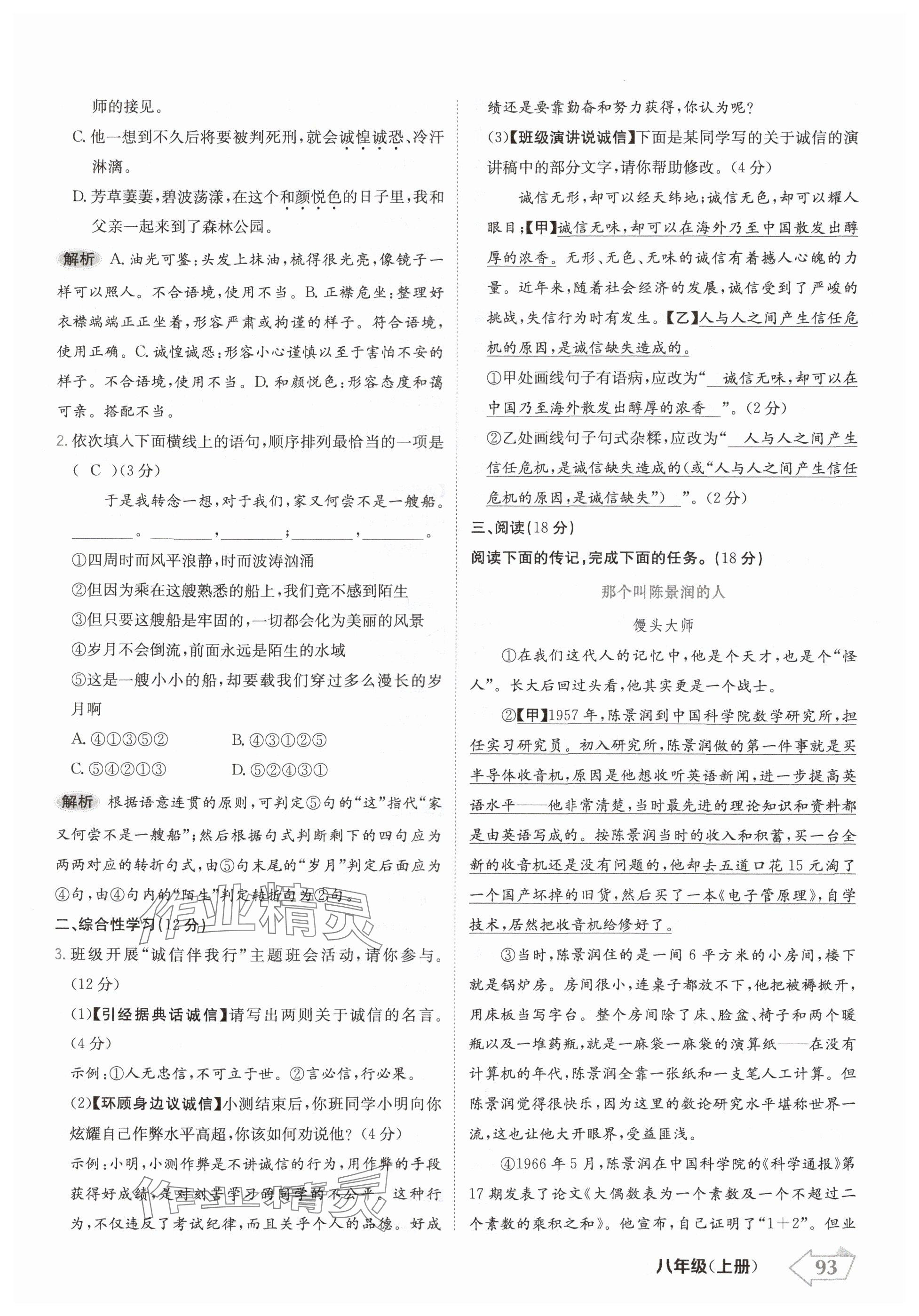 注:目前有些书本章节名称可能整理的还不是很完善,但都是按照顺序排列的,请同学们按照顺序仔细查找。练习册 2024年金牌学练测八年级语文上册人教版 答案主要是用来给同学们做完题方便对答案用的,请勿直接抄袭。