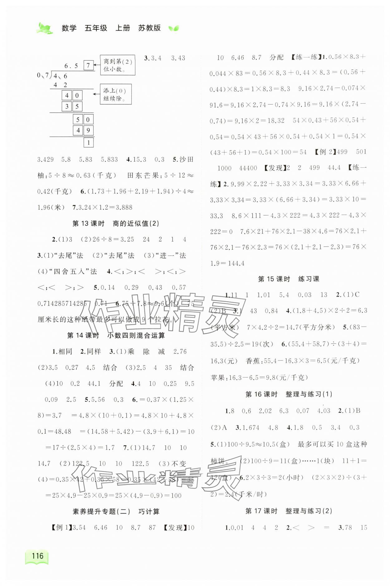 注:目前有些书本章节名称可能整理的还不是很完善,但都是按照顺序排列的,请同学们按照顺序仔细查找。练习册 2024年新课程学习与测评同步学习五年级数学上册苏教版 答案主要是用来给同学们做完题方便对答案用的,请勿直接抄袭。