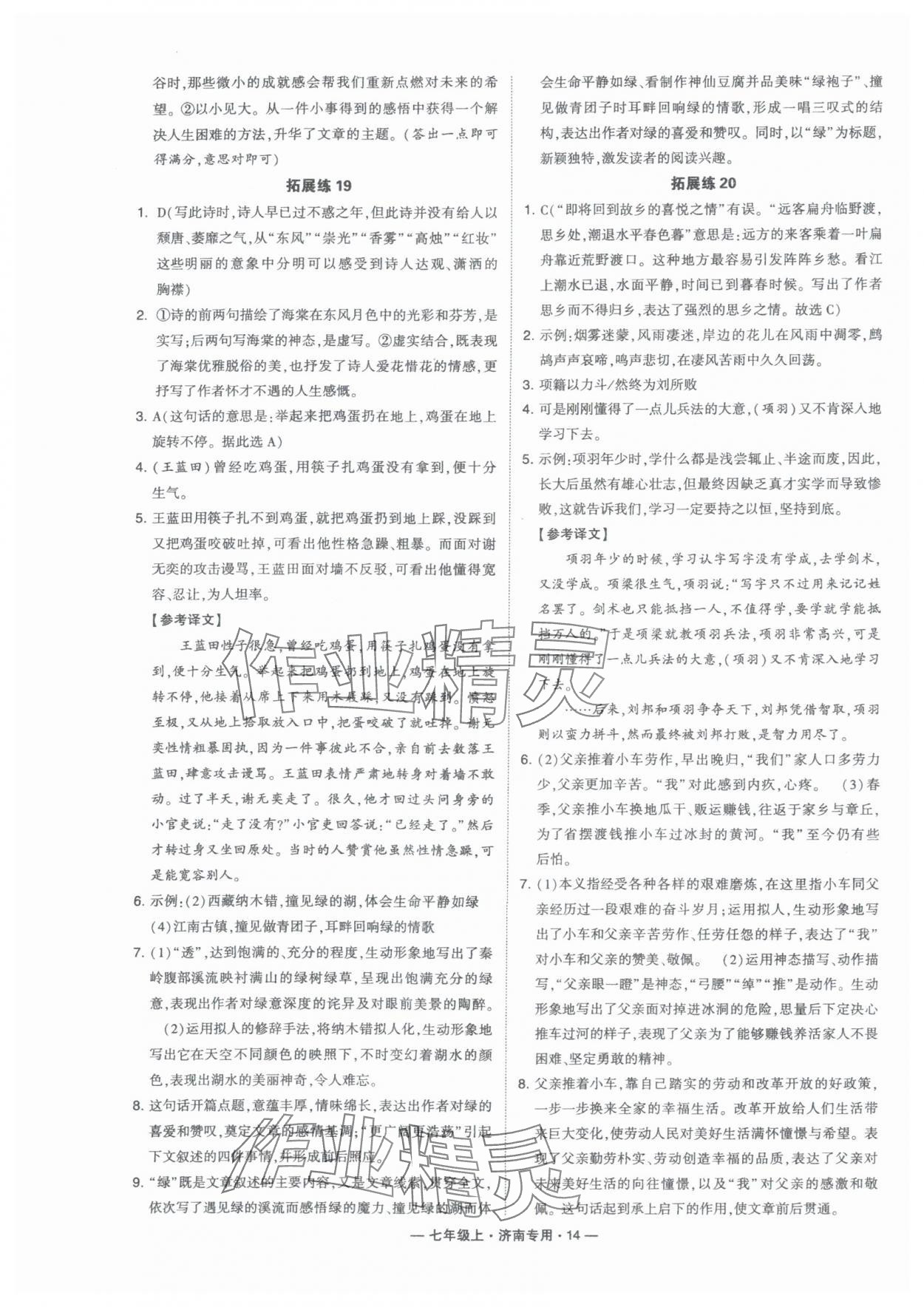 2024年学霸组合训练七年级语文上册人教版济南专版