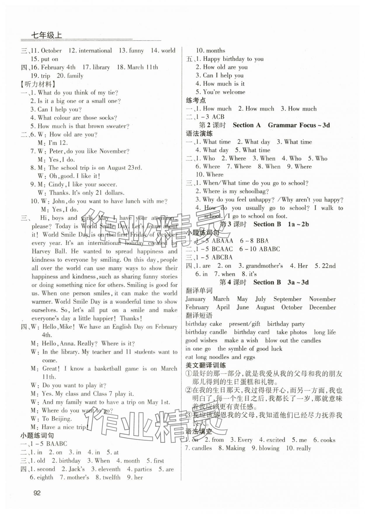 注:目前有些书本章节名称可能整理的还不是很完善,但都是按照顺序排列的,请同学们按照顺序仔细查找。练习册 2024年全练练测考七年级英语上册人教版 答案主要是用来给同学们做完题方便对答案用的,请勿直接抄袭。