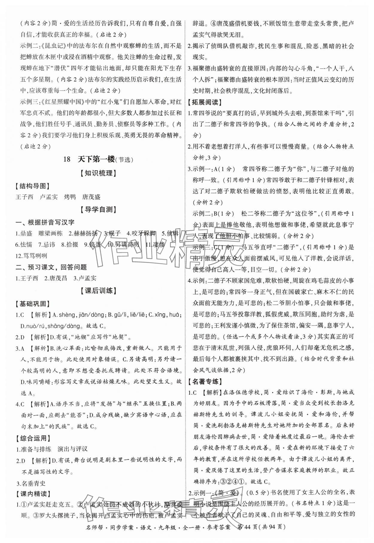 注:目前有些书本章节名称可能整理的还不是很完善,但都是按照顺序排列的,请同学们按照顺序仔细查找。练习册 2024年名师帮同步学案九年级语文全一册人教版 答案主要是用来给同学们做完题方便对答案用的,请勿直接抄袭。