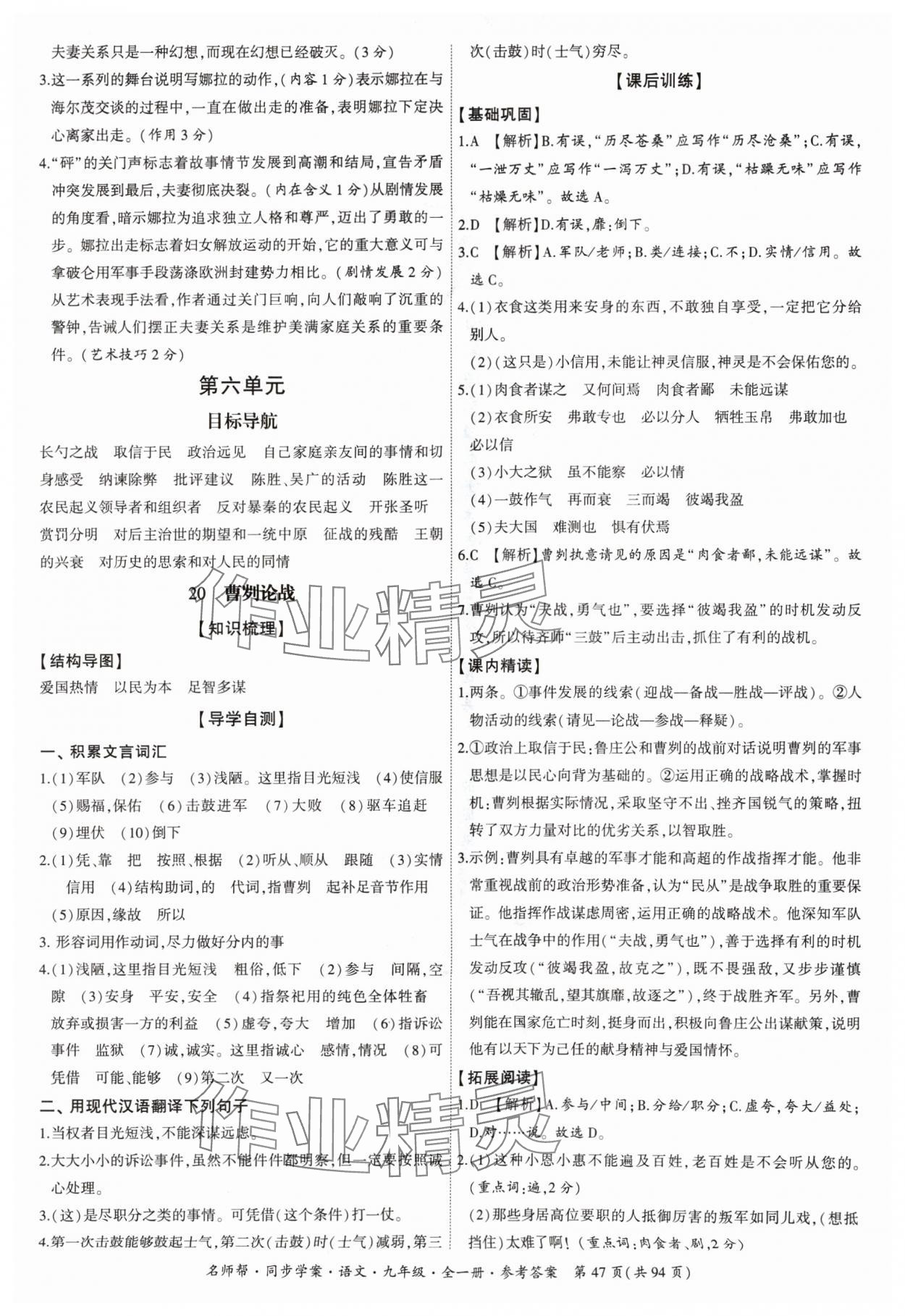 注:目前有些书本章节名称可能整理的还不是很完善,但都是按照顺序排列的,请同学们按照顺序仔细查找。练习册 2024年名师帮同步学案九年级语文全一册人教版 答案主要是用来给同学们做完题方便对答案用的,请勿直接抄袭。
