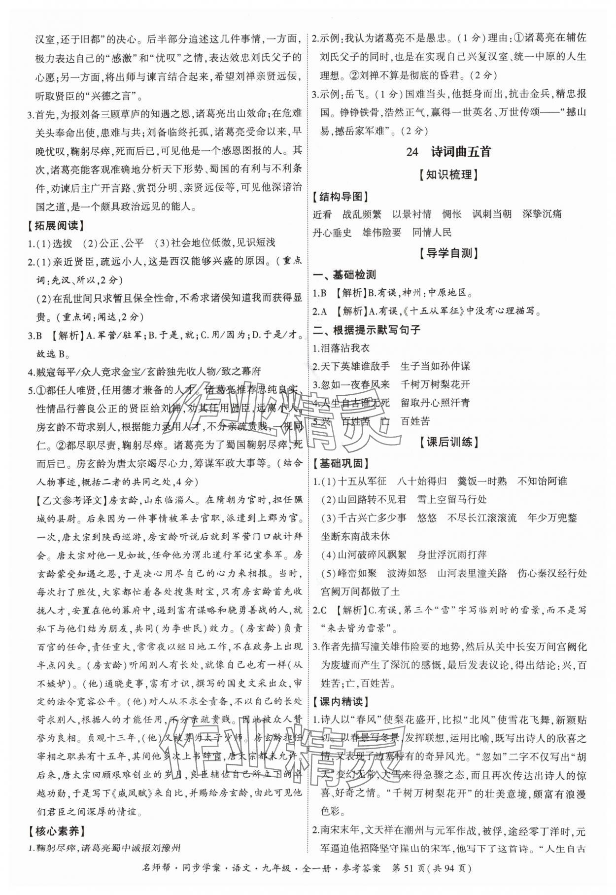 注:目前有些书本章节名称可能整理的还不是很完善,但都是按照顺序排列的,请同学们按照顺序仔细查找。练习册 2024年名师帮同步学案九年级语文全一册人教版 答案主要是用来给同学们做完题方便对答案用的,请勿直接抄袭。