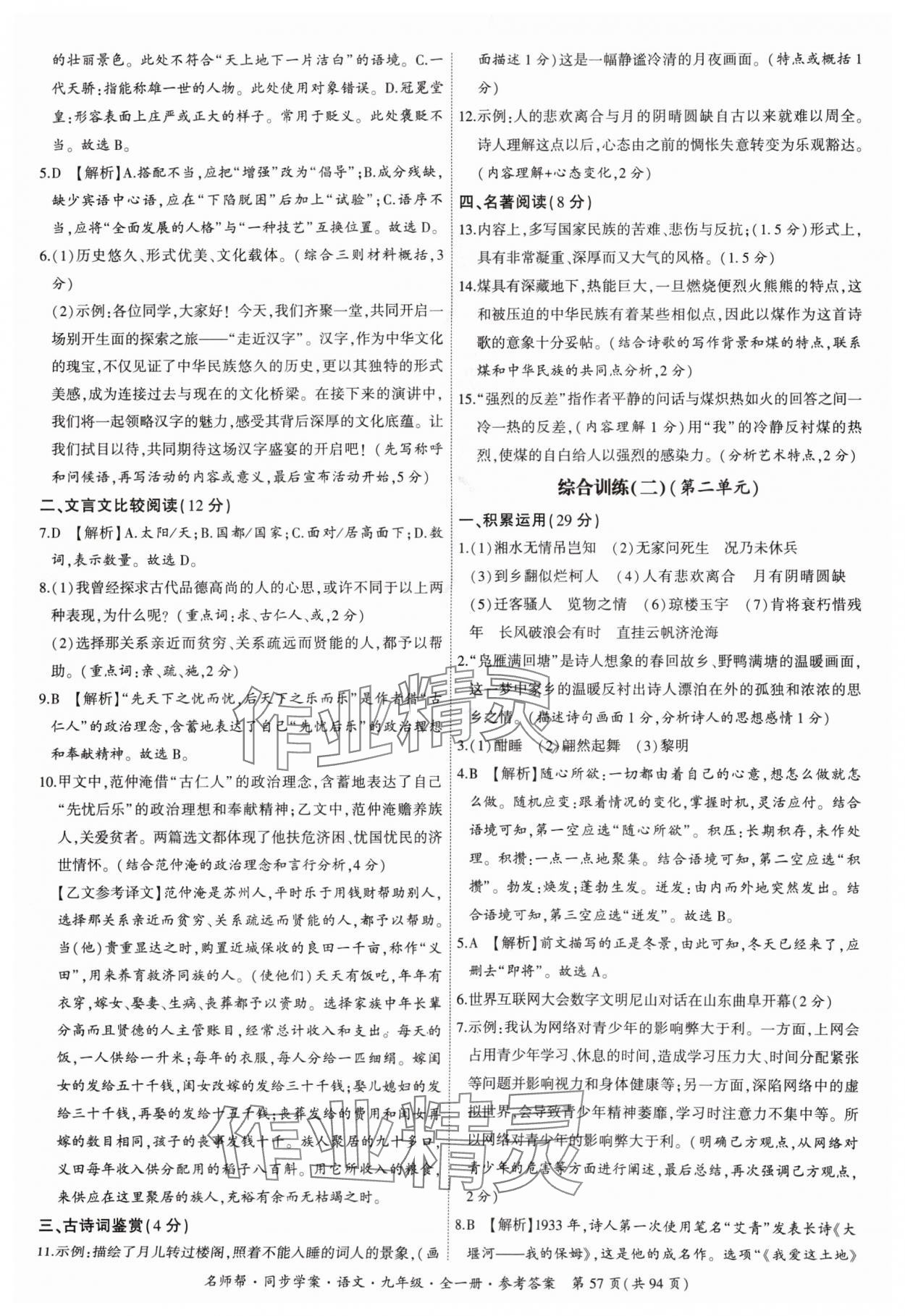注:目前有些书本章节名称可能整理的还不是很完善,但都是按照顺序排列的,请同学们按照顺序仔细查找。练习册 2024年名师帮同步学案九年级语文全一册人教版 答案主要是用来给同学们做完题方便对答案用的,请勿直接抄袭。