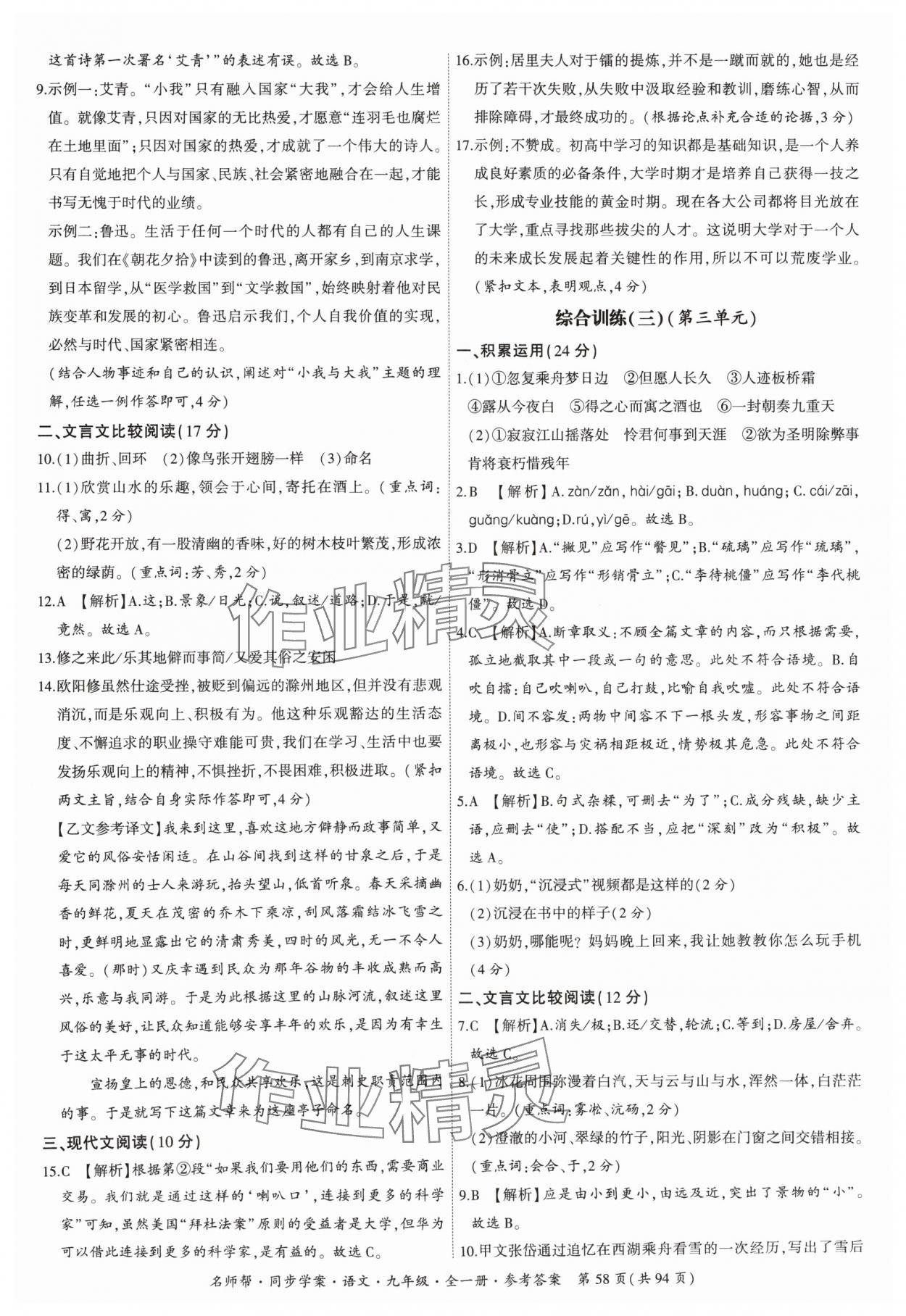 注:目前有些书本章节名称可能整理的还不是很完善,但都是按照顺序排列的,请同学们按照顺序仔细查找。练习册 2024年名师帮同步学案九年级语文全一册人教版 答案主要是用来给同学们做完题方便对答案用的,请勿直接抄袭。